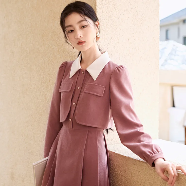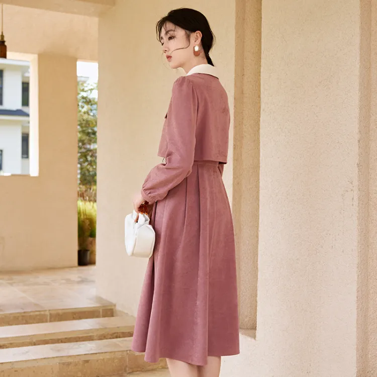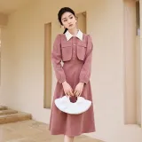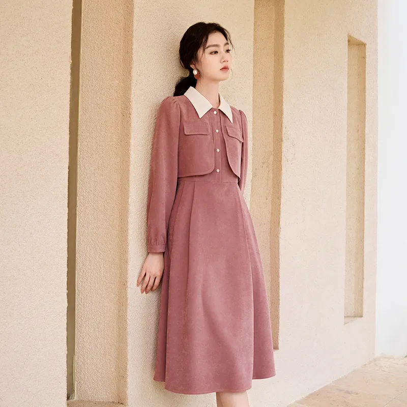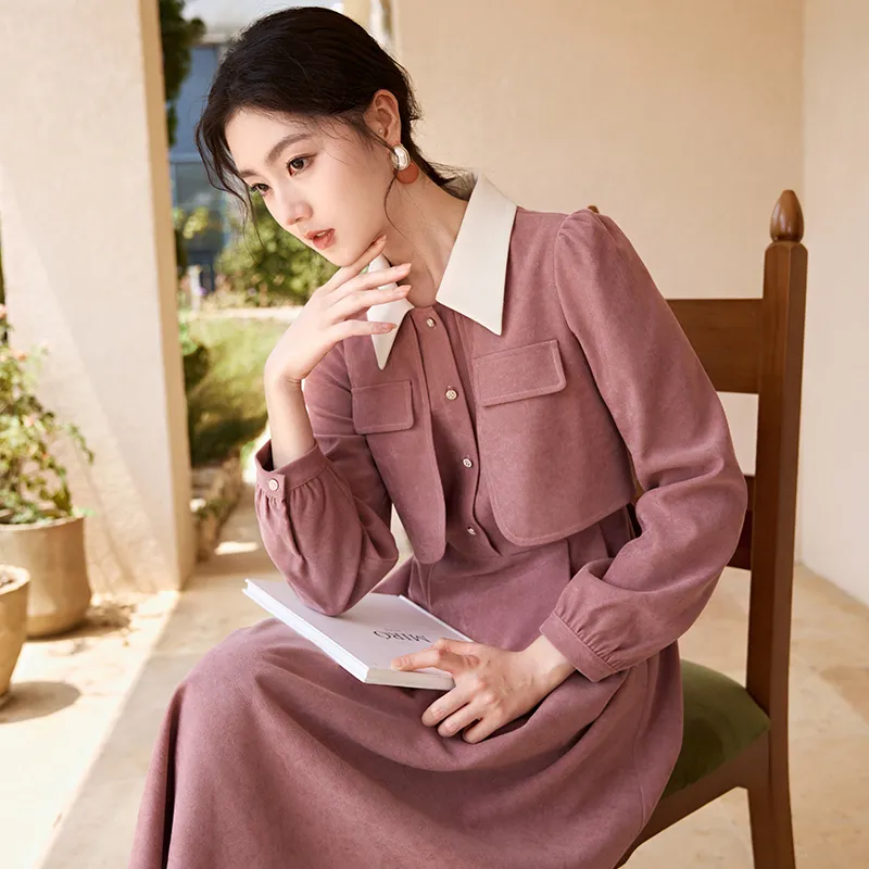 XIANGYING Длинное платье с длинными рукавами женское розовое