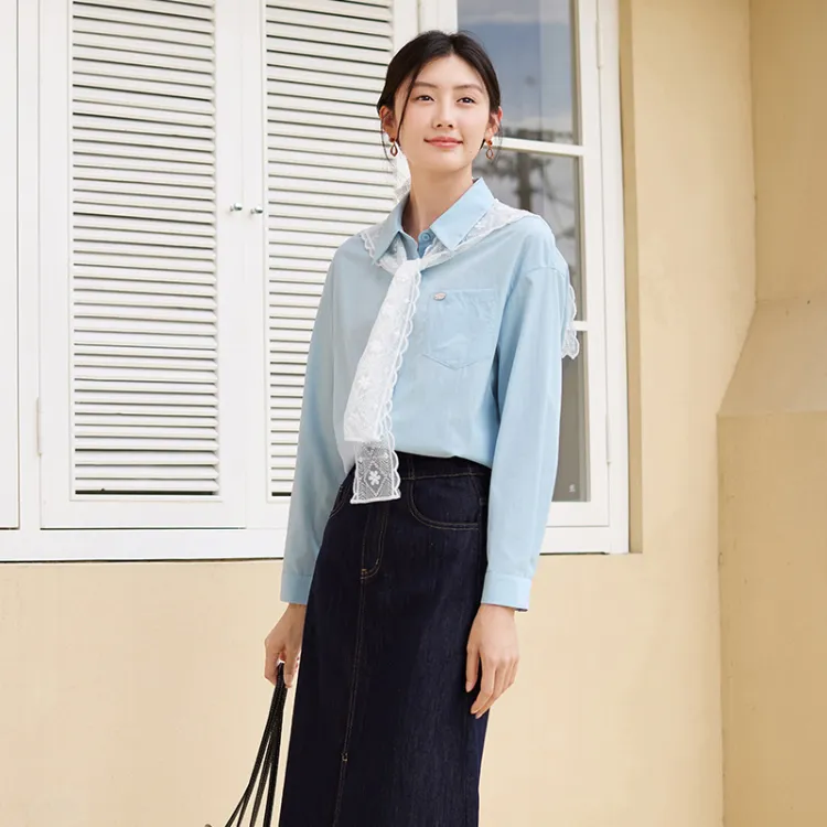 XIANGYING Морской синий Женские рубашки