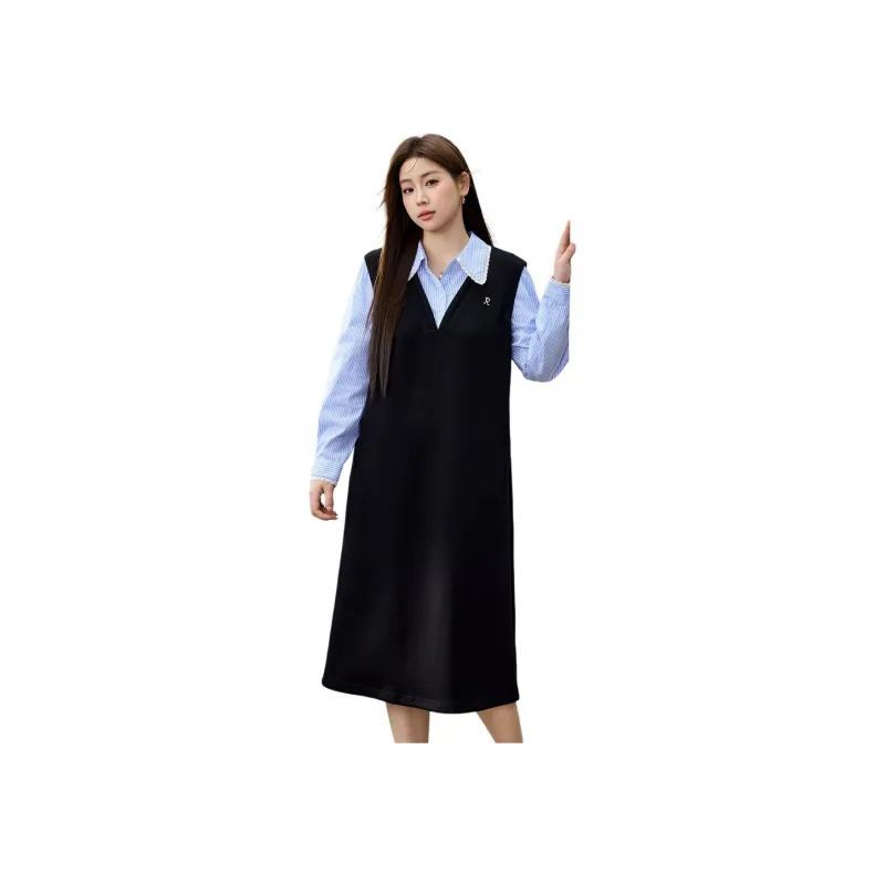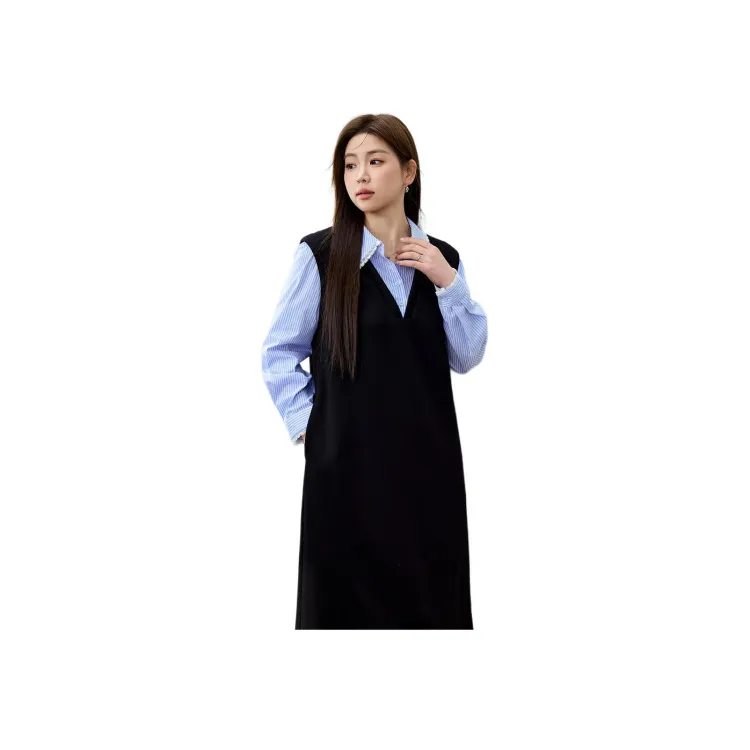 XIANLIXIU Длинное платье с длинным рукавом женское черное