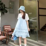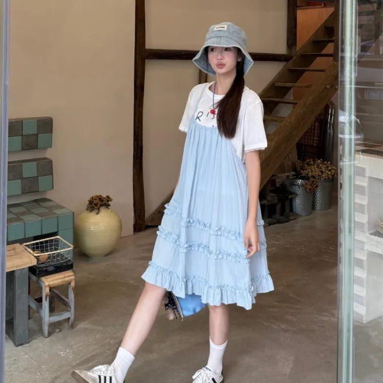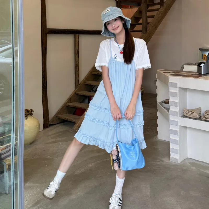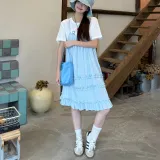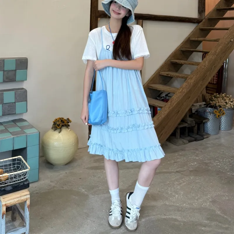 XIANSINIAO Белая T-рубашка + Синяя юбка Женские слип-платья