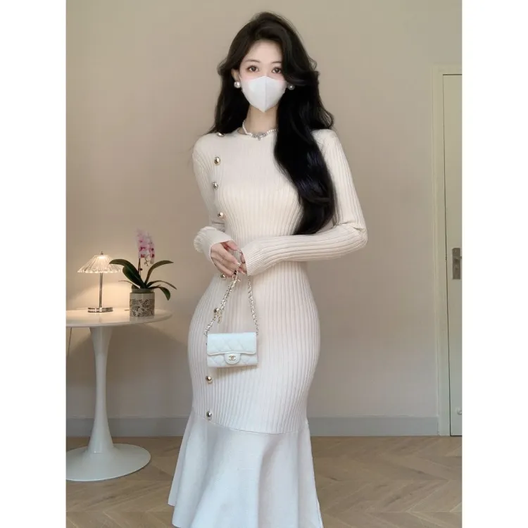 XIANSINIAO Длинное платье с длинными рукавами женское