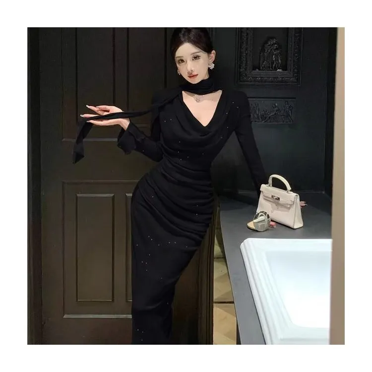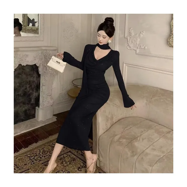 XIANSINIAO Длинное платье с длинными рукавами женское