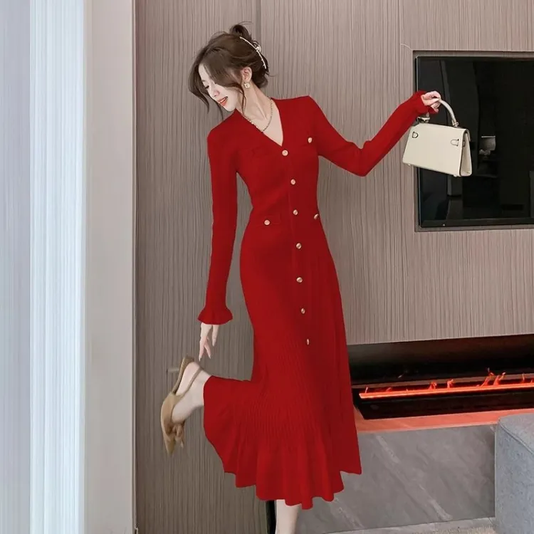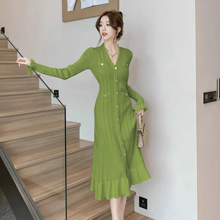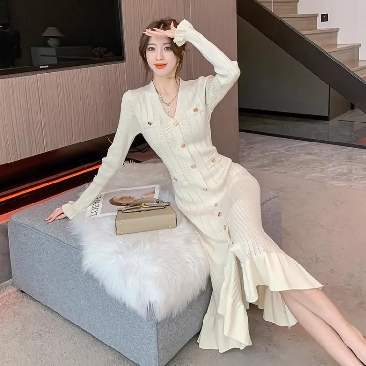 XIANSINIAO Длинное платье с длинными рукавами женское