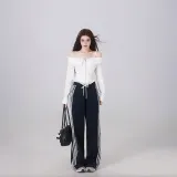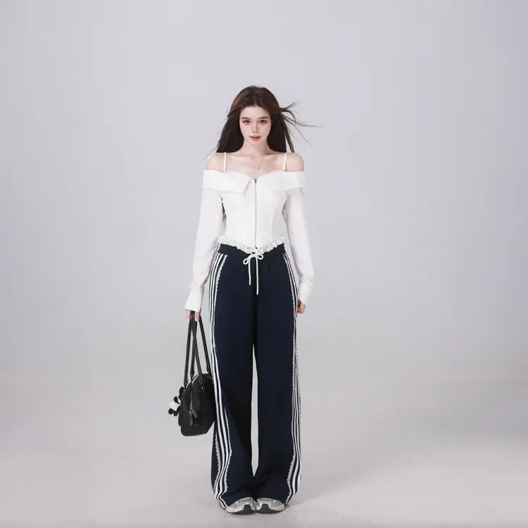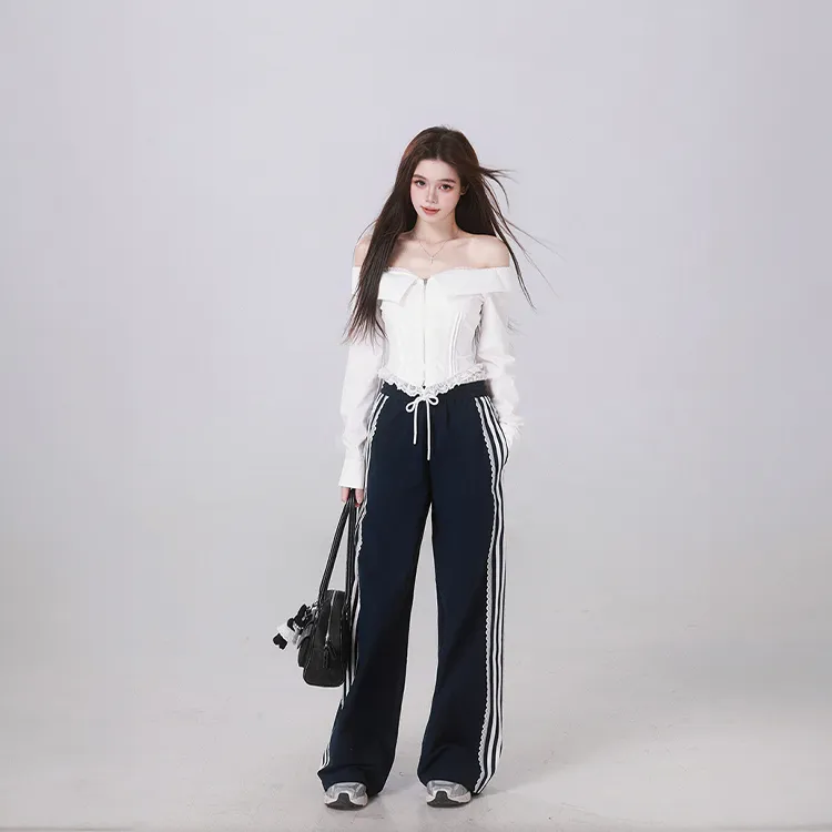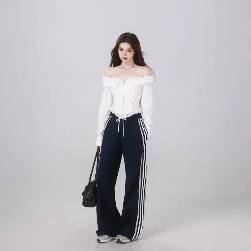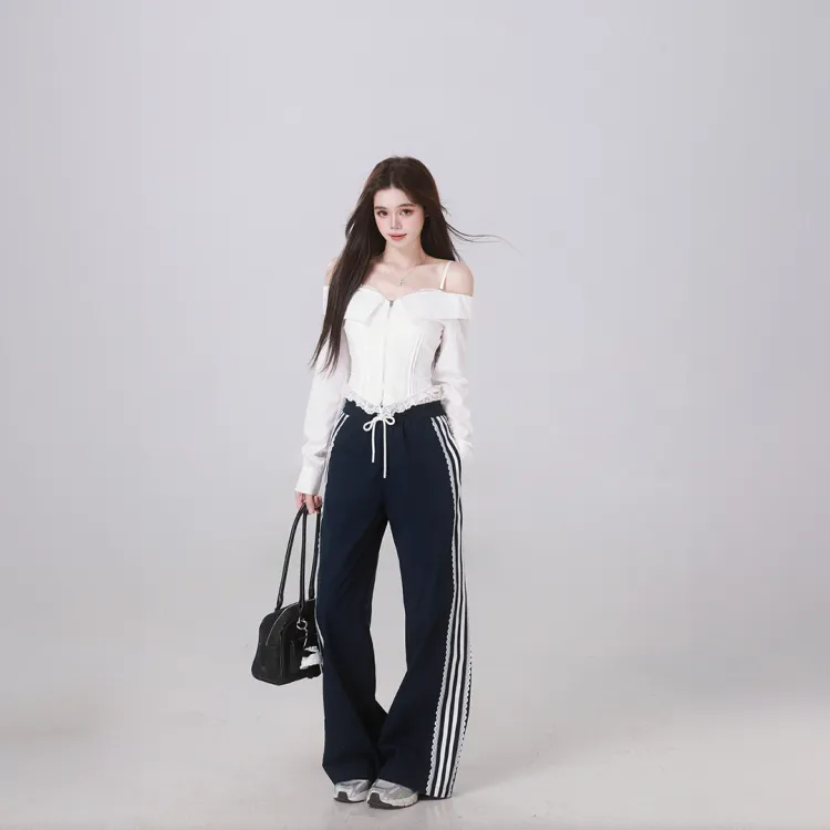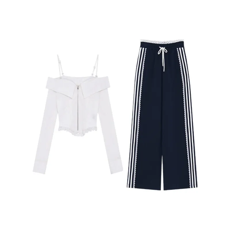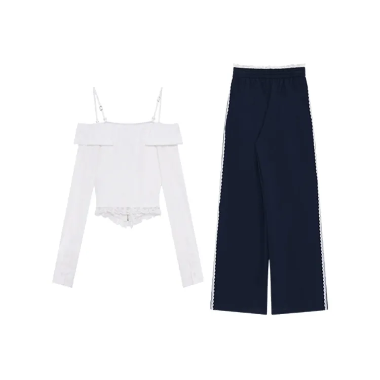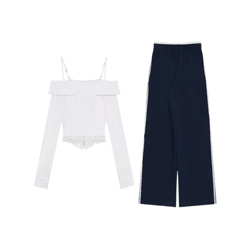 Комплект:Белый топ + темно-синие штаны