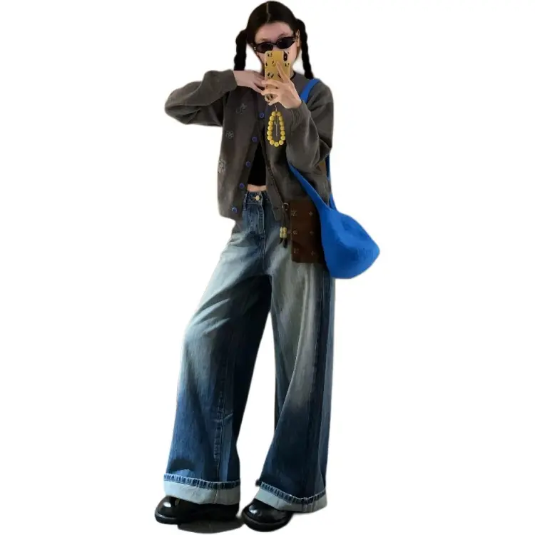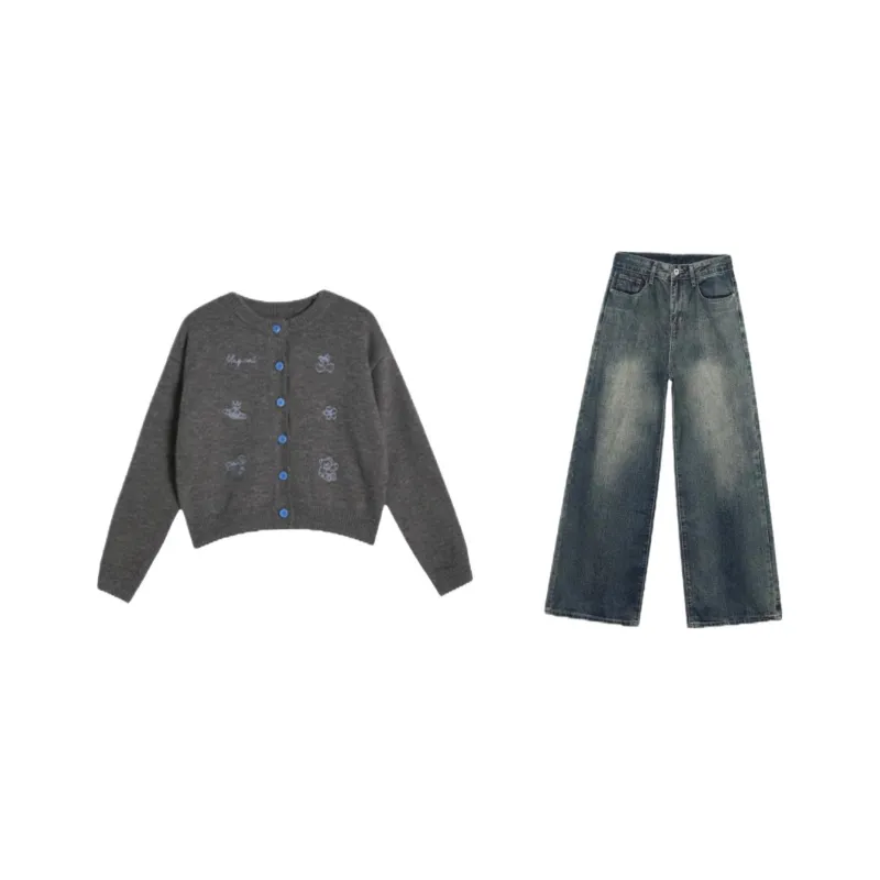 Комплект одежды (Серый кардиган + джинсы)