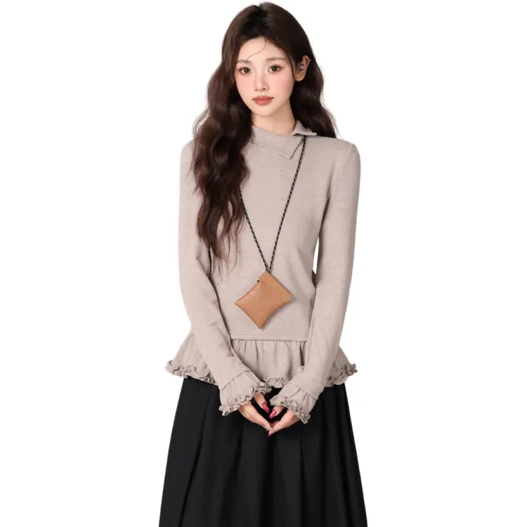 XIAOJUCHUANLI Бежевый верблюжий женский трикотаж