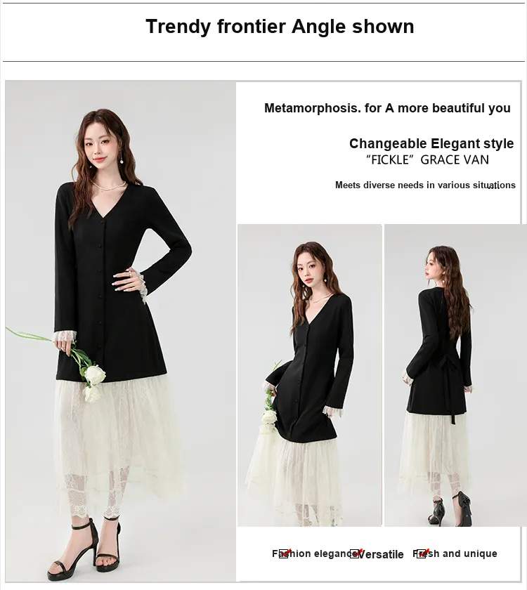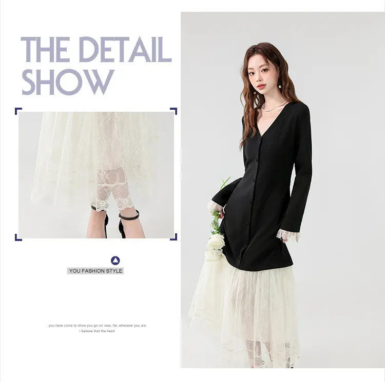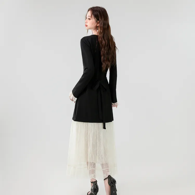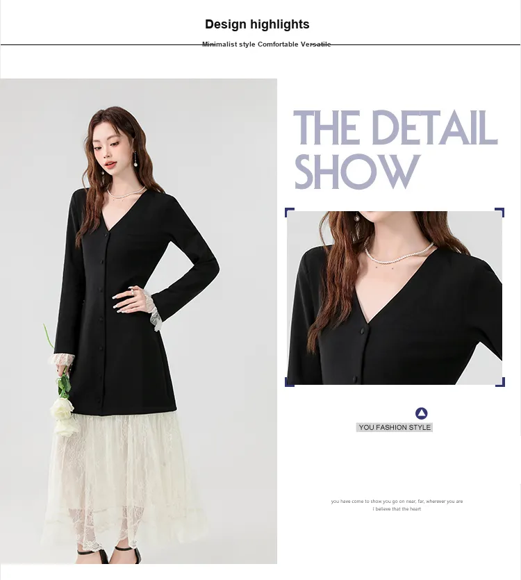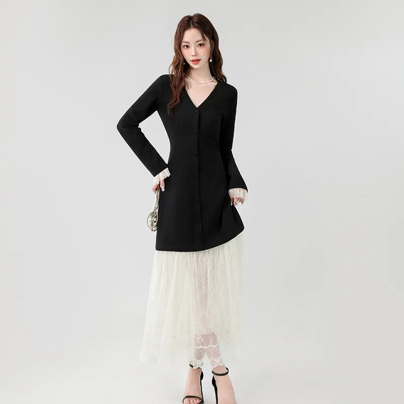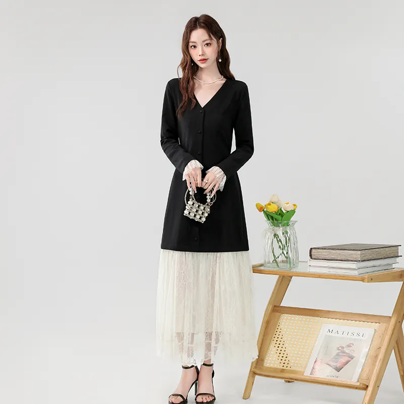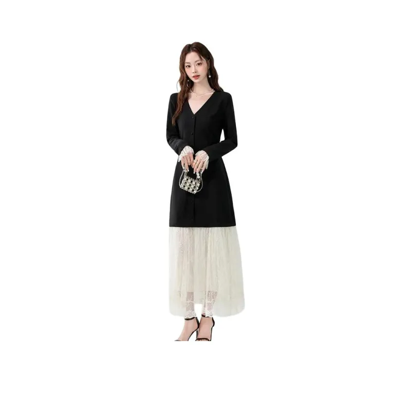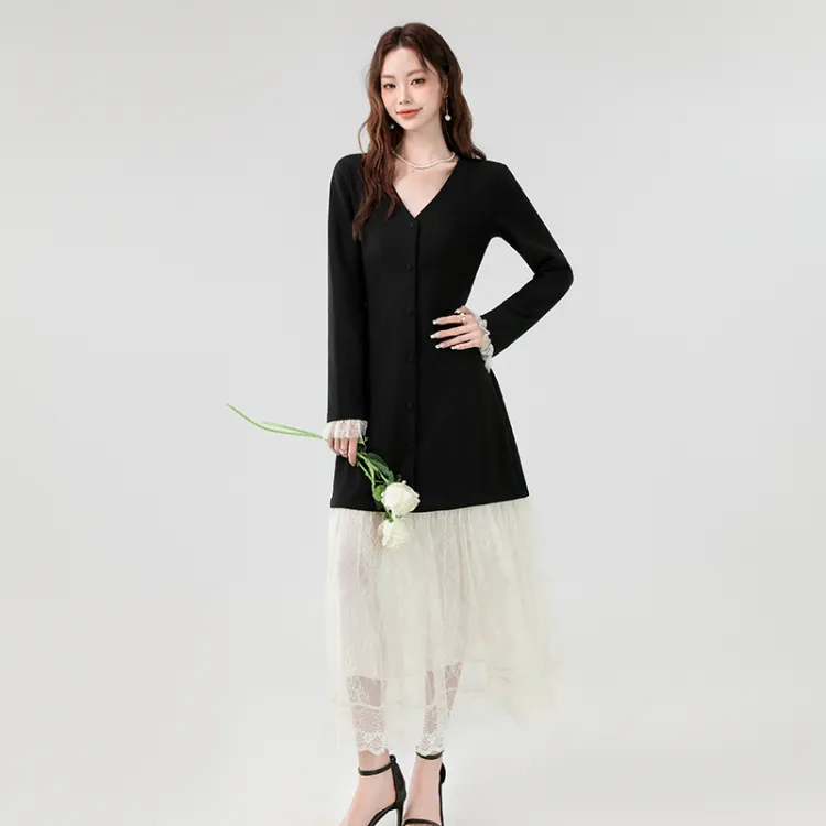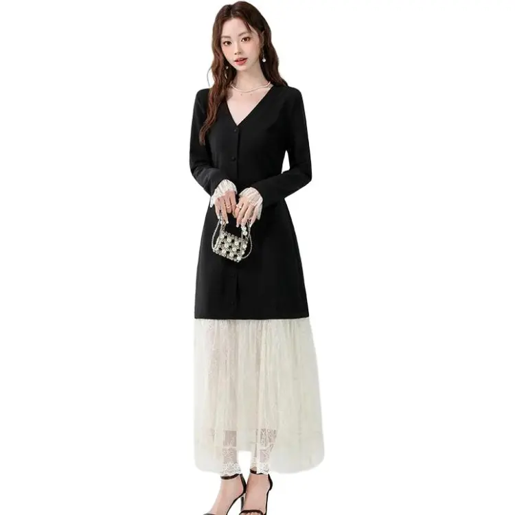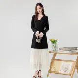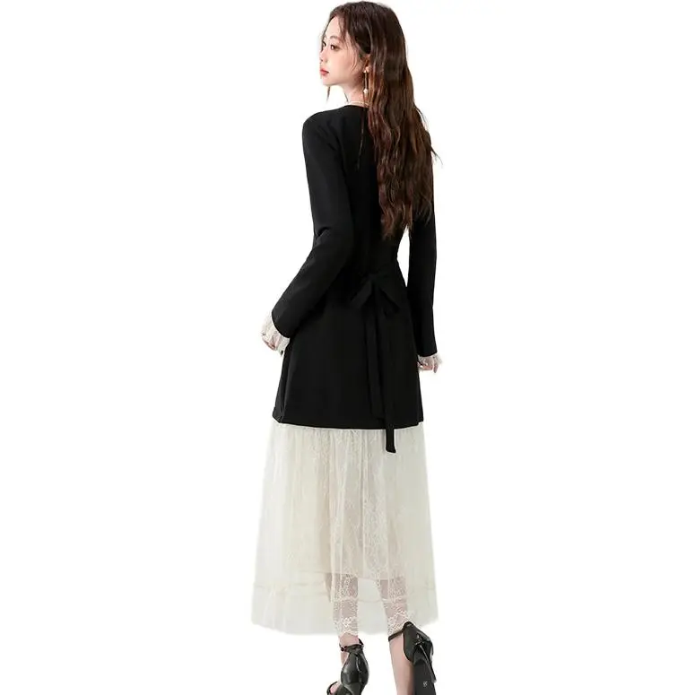 XIAOJUCHUANLI Длинное платье с длинным рукавом женское черное