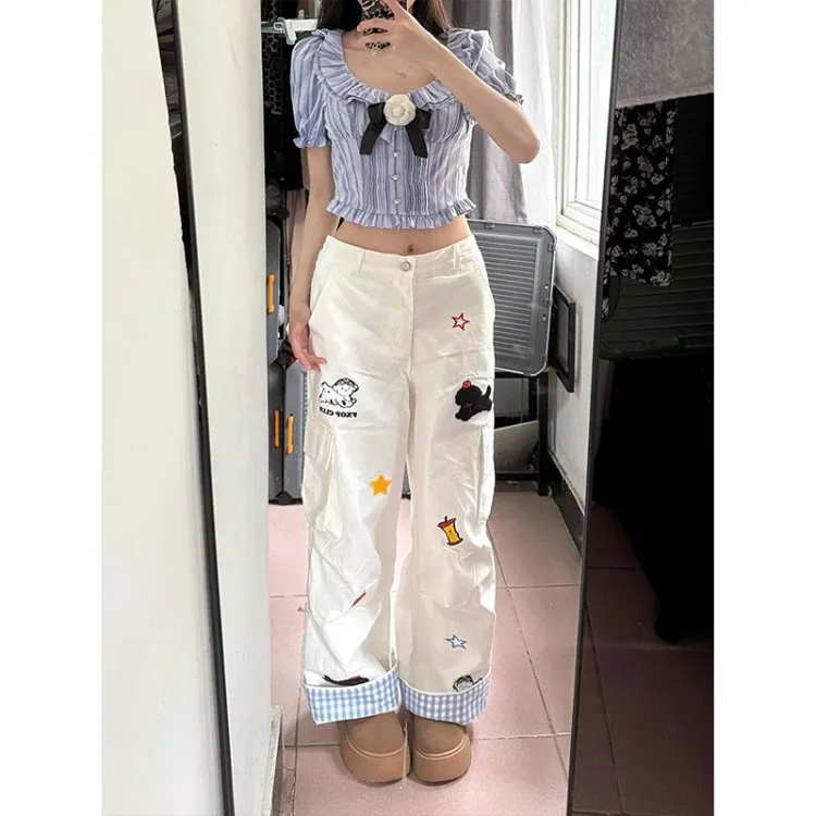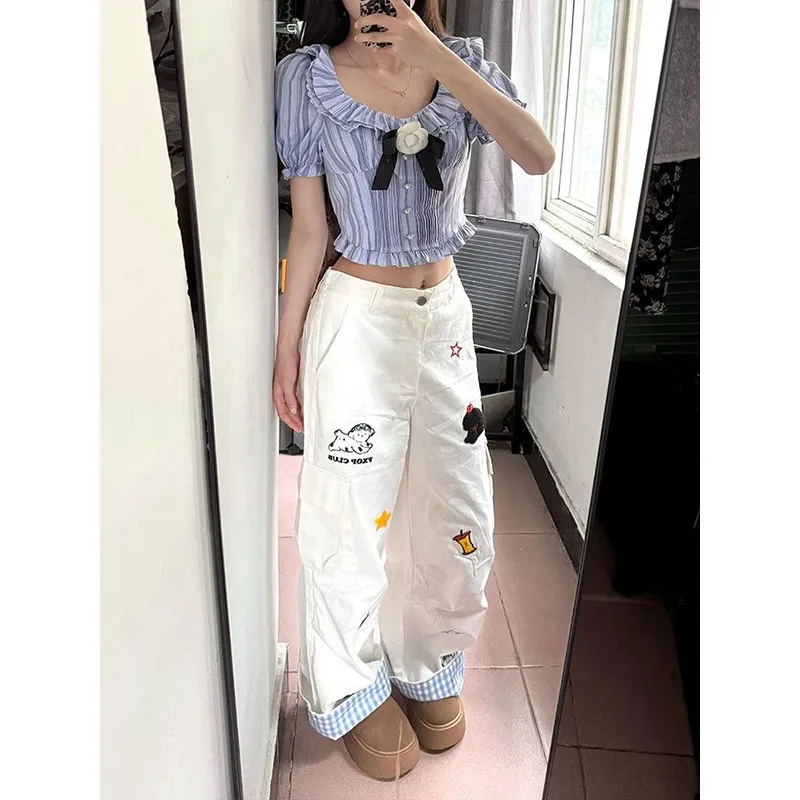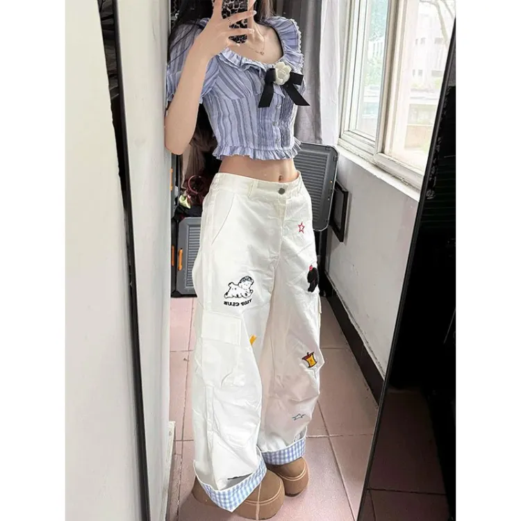 XIAOLIZI Белые Женские Повседневные Брюки