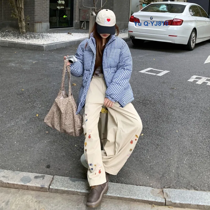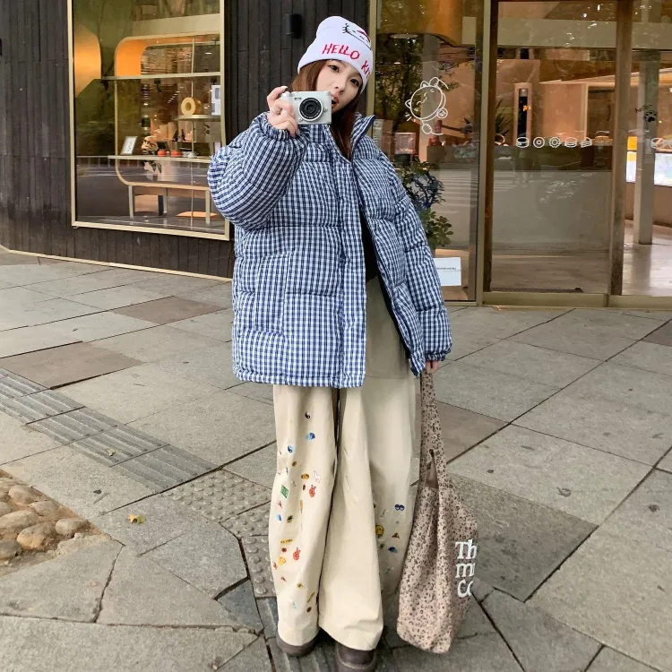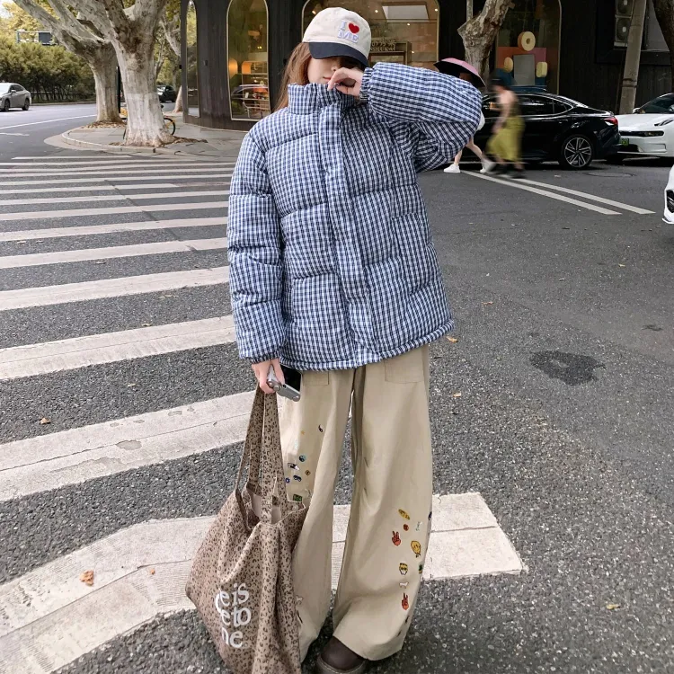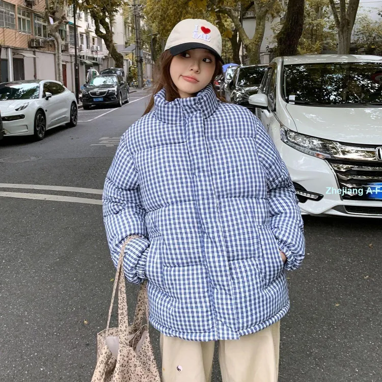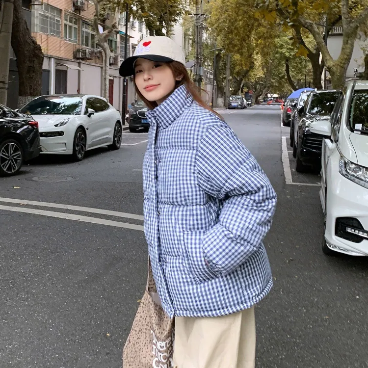 XIAOLIZI Синий Клетка Унисекс Пуховики