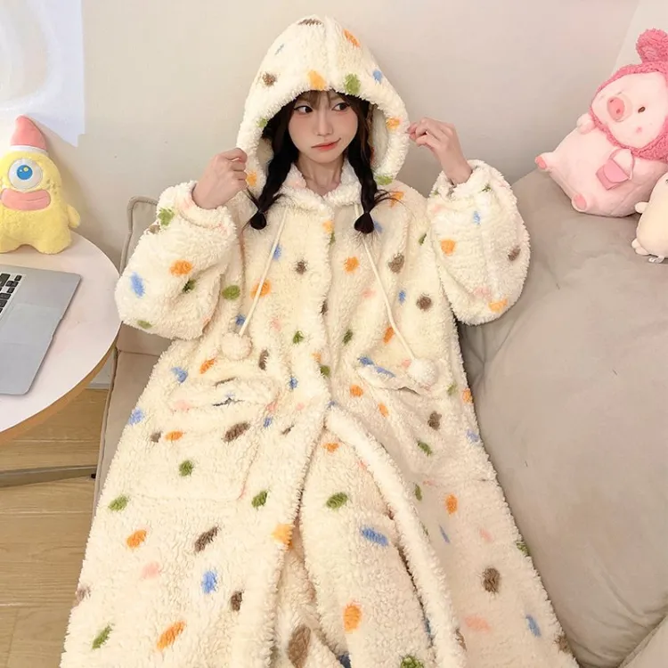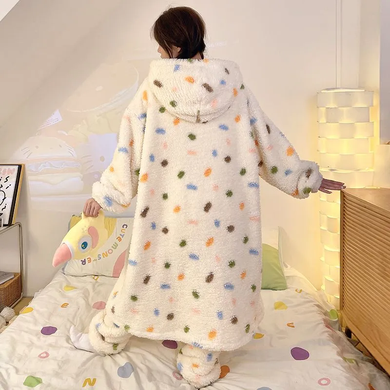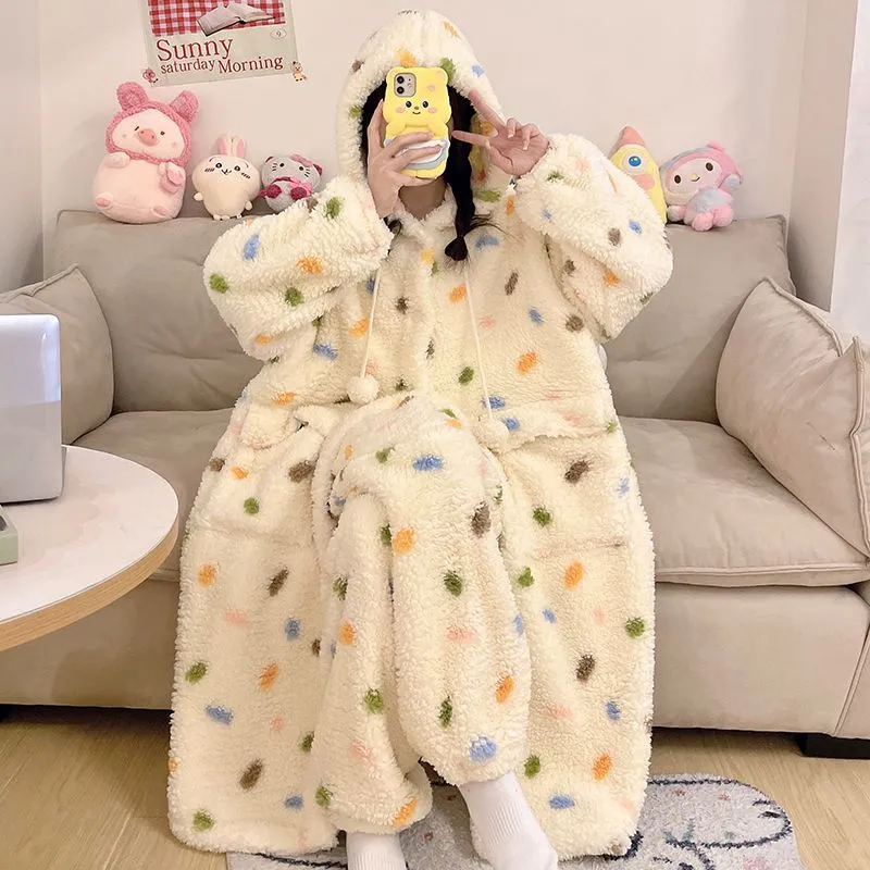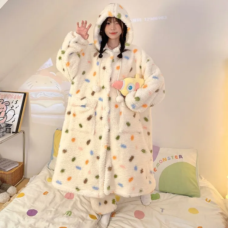 XIAOLIZI Многоцветный Гороховый узор С капюшоном Наборы одежды Женские Пижамные комплекты