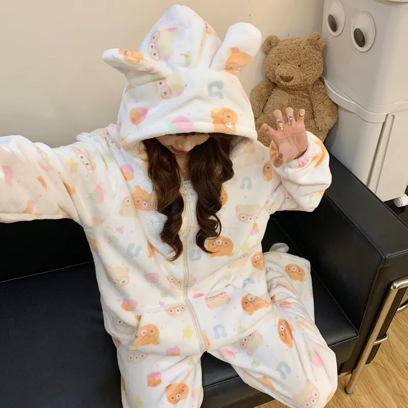 XIAOLIZI Little Желтый Медвежонок С капюшоном Топ+брюки Женские Пижамные комплекты