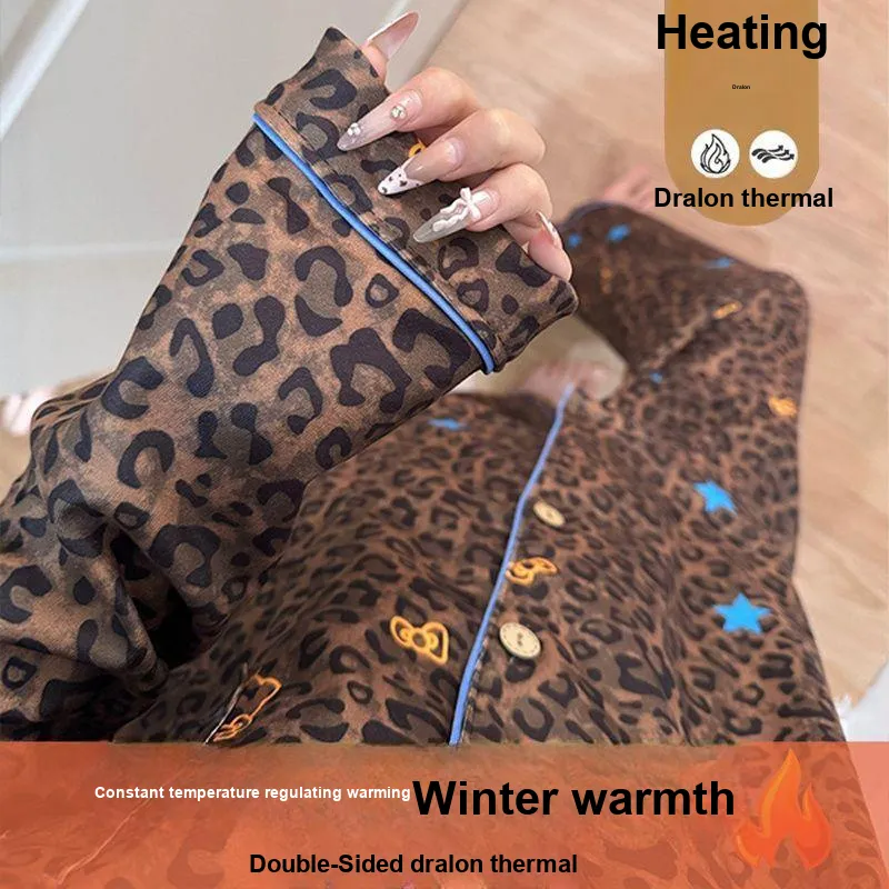 XIAOLIZI Звезда Коричневый Леопардовый принт Женские Пижамные комплекты