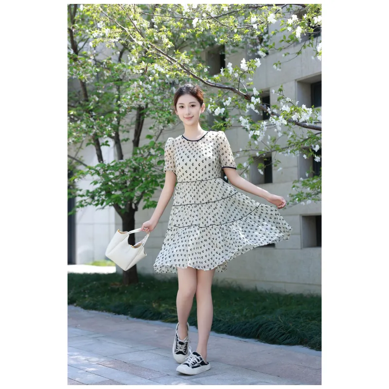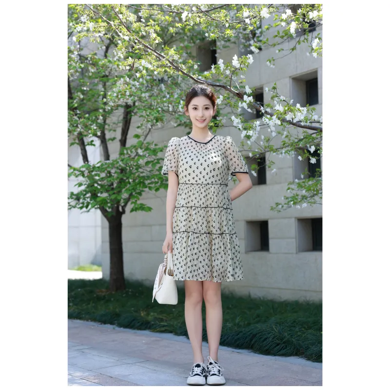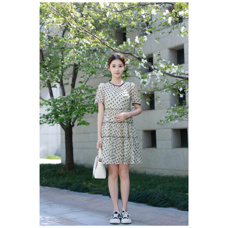 Короткое платье с короткими рукавами женское с сердцем цветочный дизайн