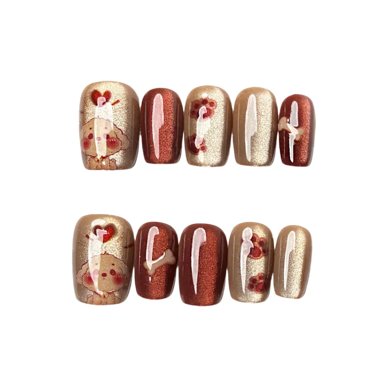XIARISHIYUN Печенье Собака False Nail Короткий ЛАДЬЕР Коричневый Jump Цвет Милый