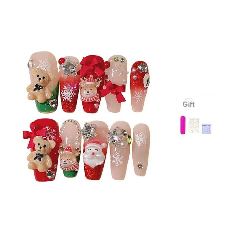 XIBI Handcrafted False Nail Лось Французский Мультяшный Бант Средний Длина (размер в длину) Праздничный Ногтей Съемный