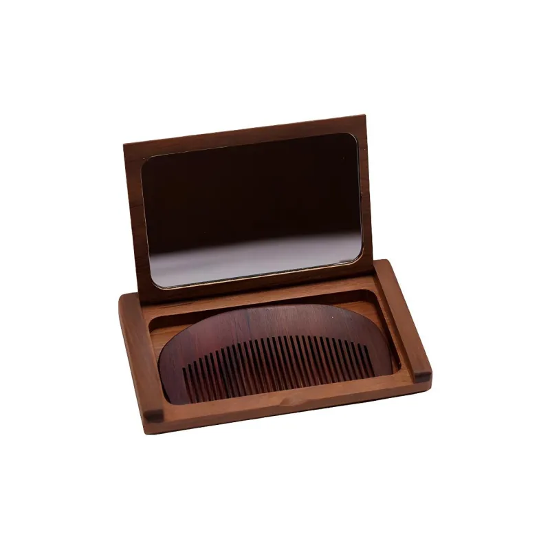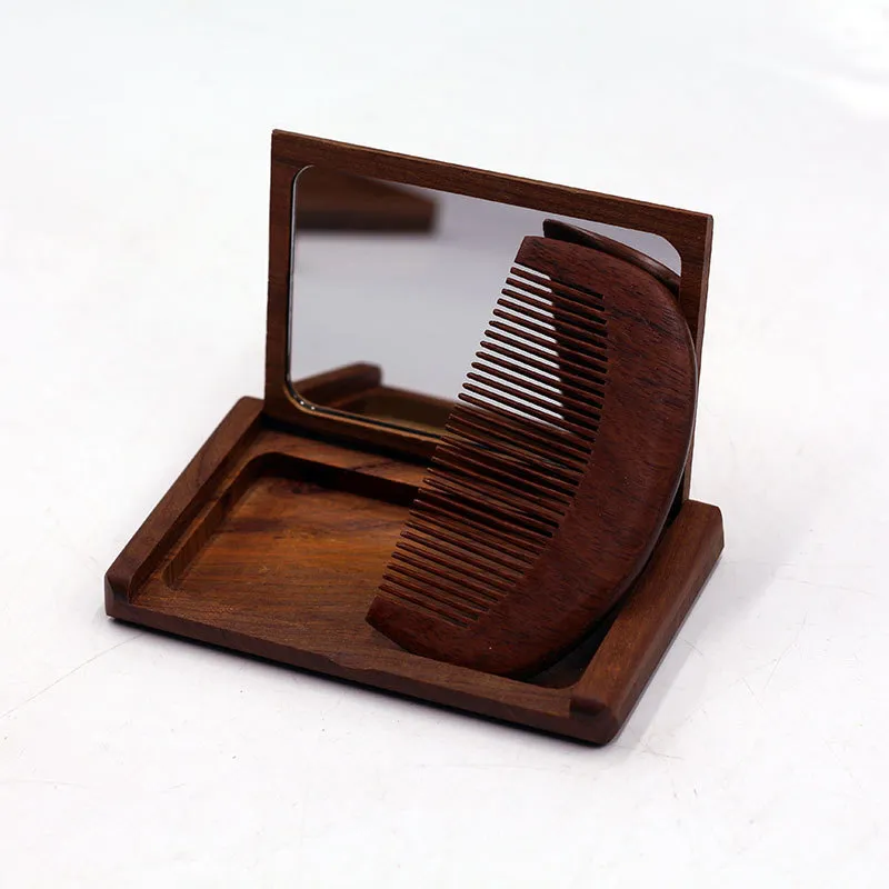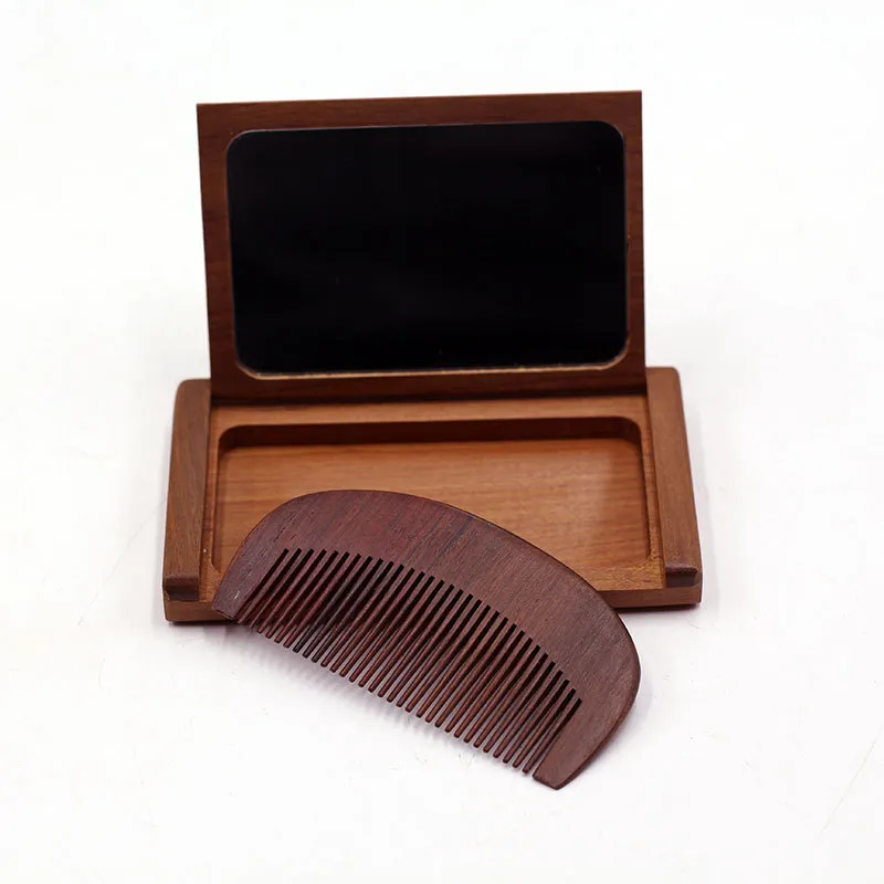 XIBI Golden Сандаловое дерево Складной Расческа и Зеркальце Набор с откидной крышкой Зеркальце для портативности в дороге