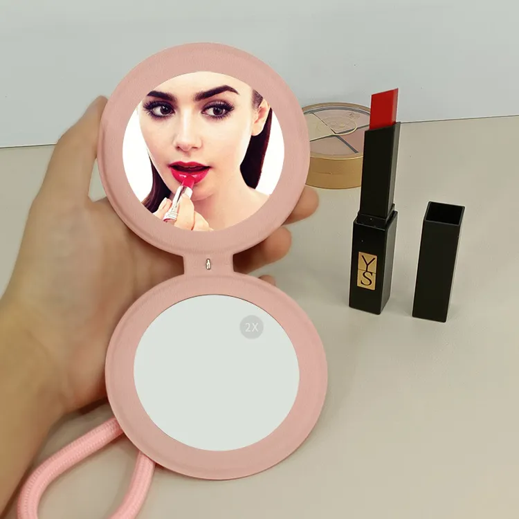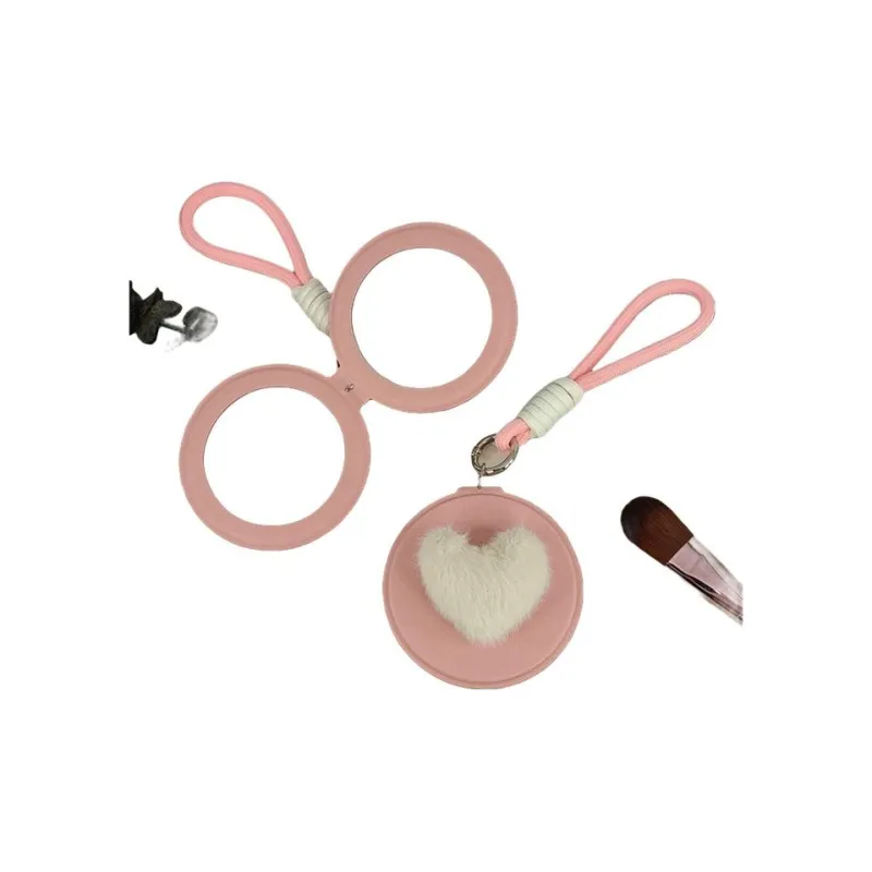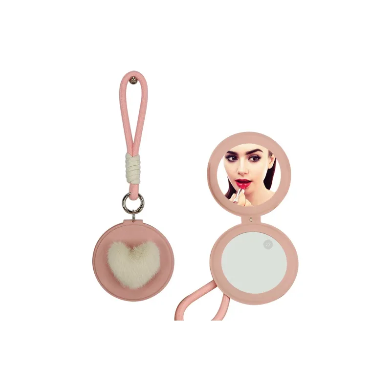 XIBI Сердце Pom Карманное зеркало из ПУ (полиуретана) кожа двойная сторона складное маленькое зеркало большой размер круглый макияжное зеркало