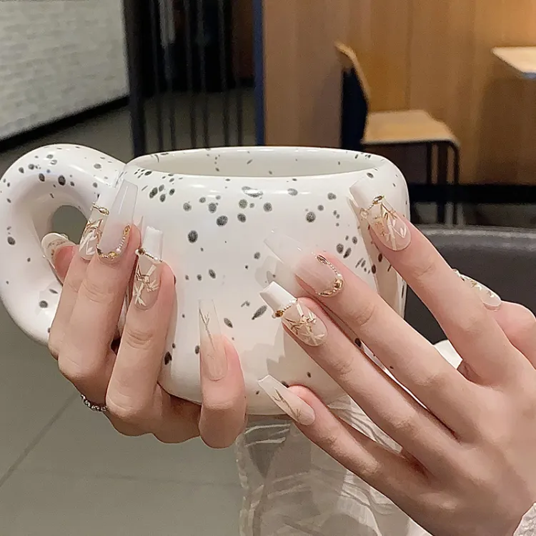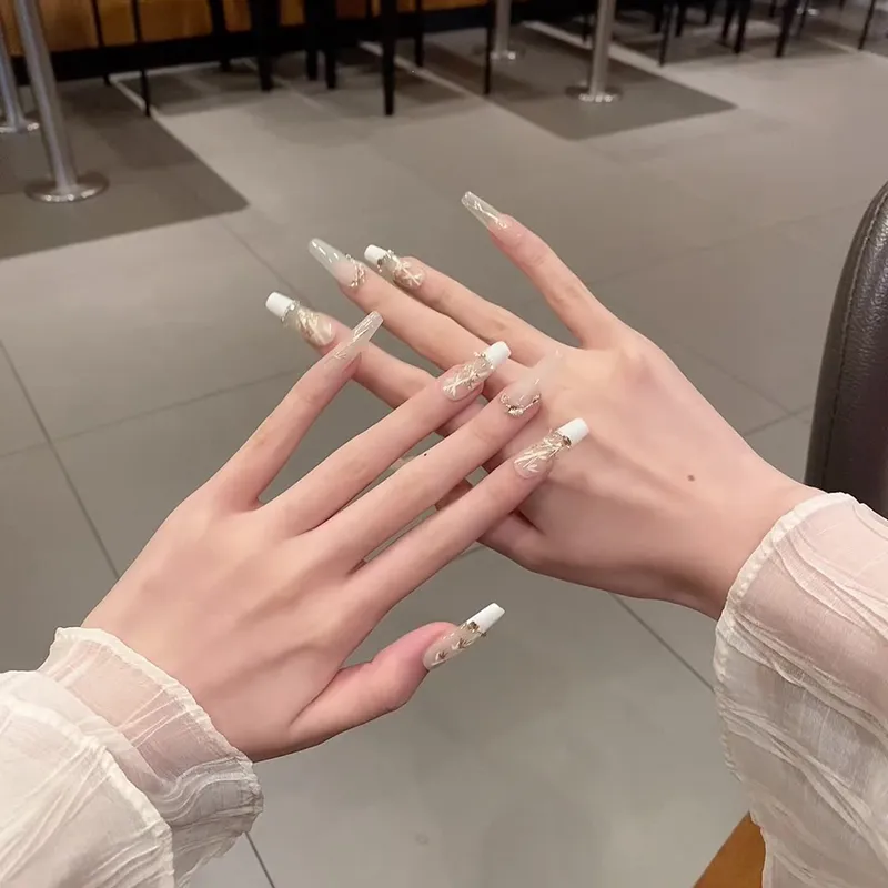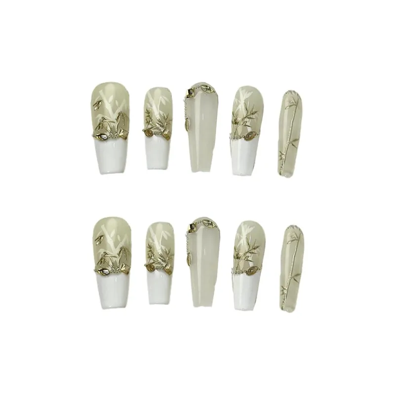 XIBI Новый китайский стиль Золотой Stamped Бамбук False Nail Короткий LADDER Китайский стиль 15 мм