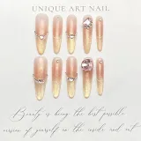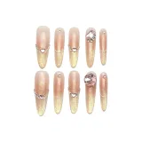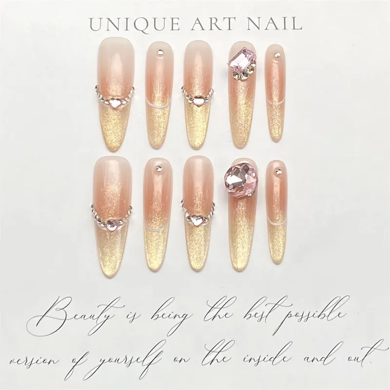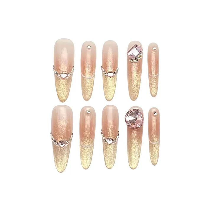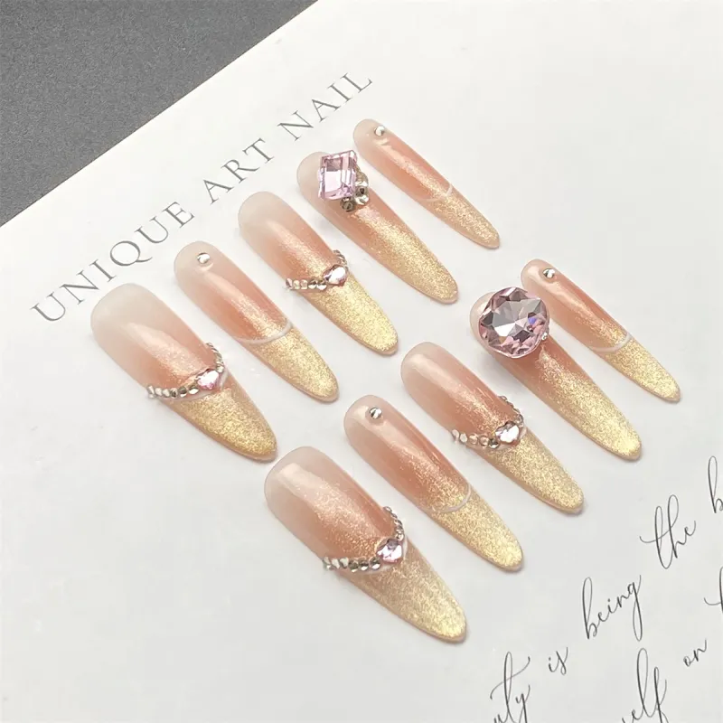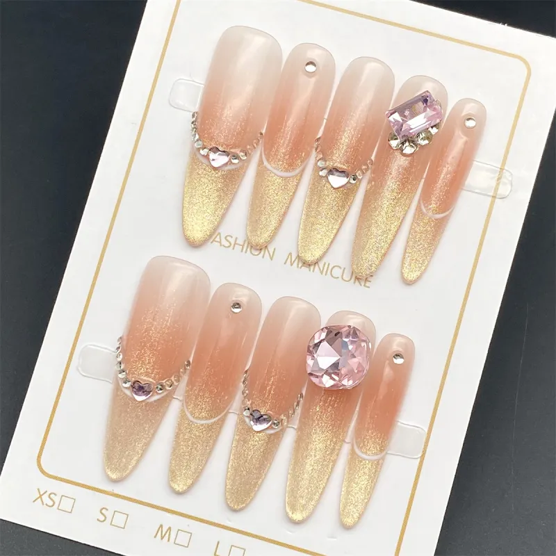 XIBI Сверкающий страз Кошачий глаз False Nail Tapered Длинный Розовый Градиентный