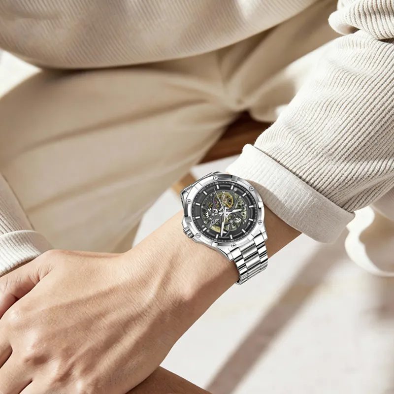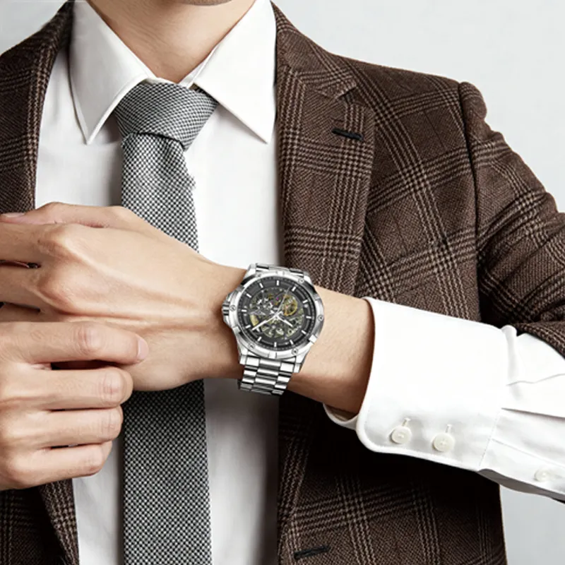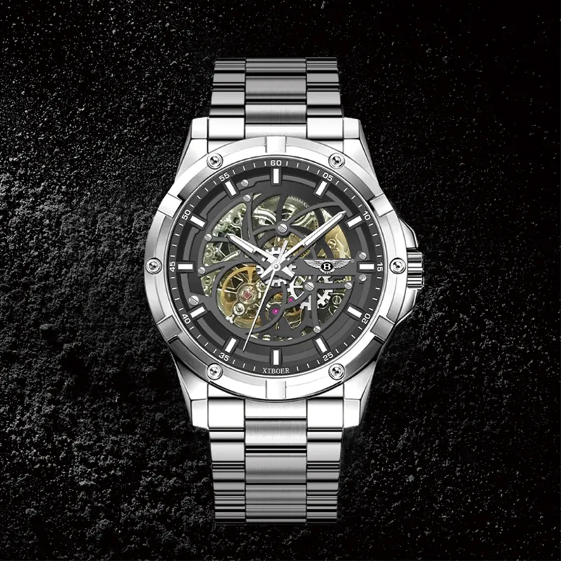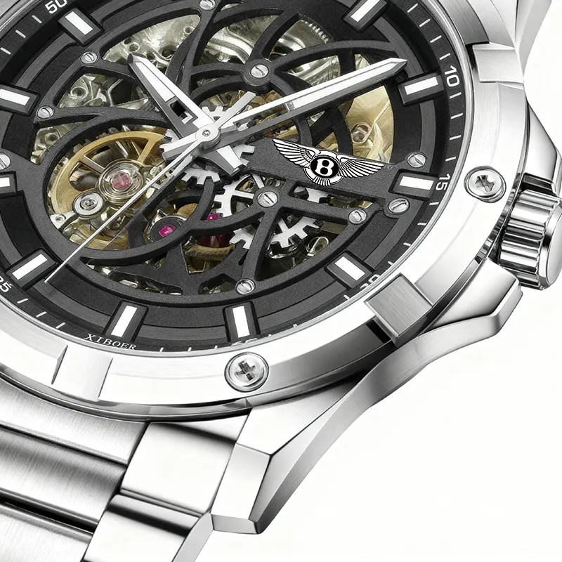 XIBOER Bentley Excellence Darth Vader Collection Механический механизм Нержавеющая сталь Ремешок Часы Унисекс Черный циферблат