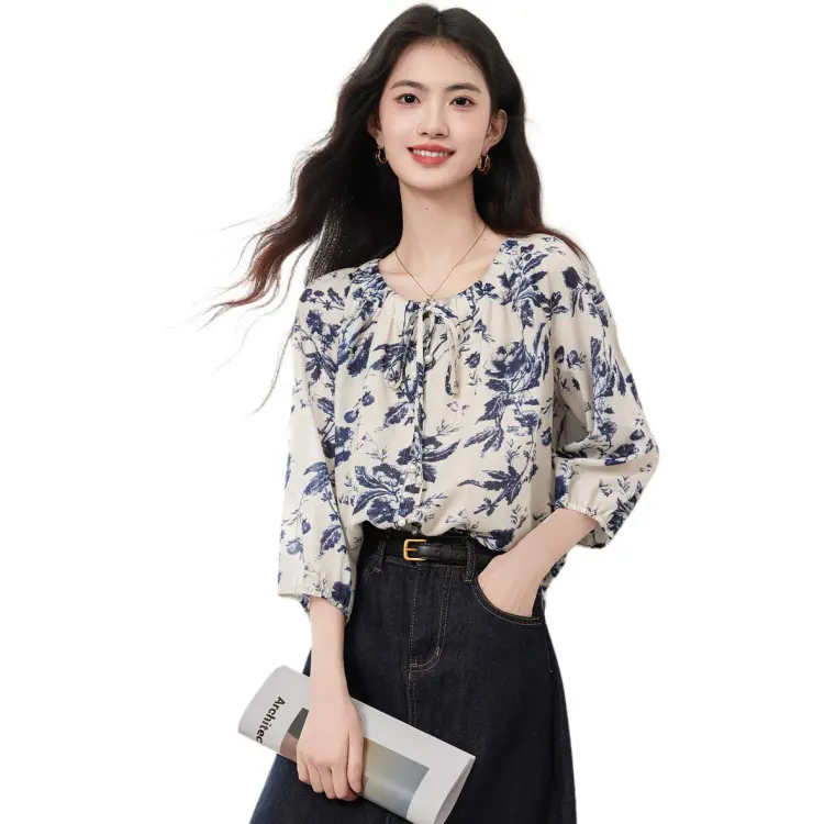 XINFEIYU Чернильный цветочный Женский топ