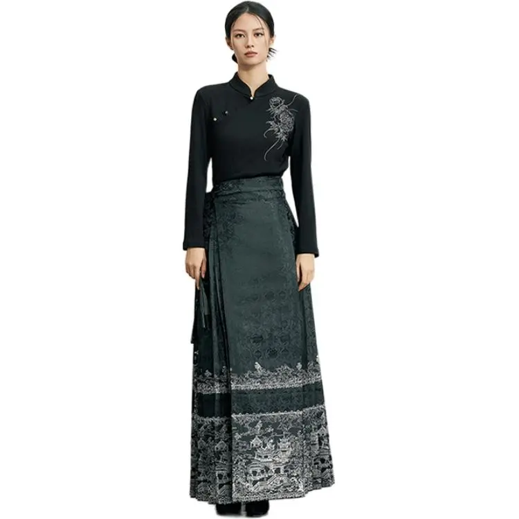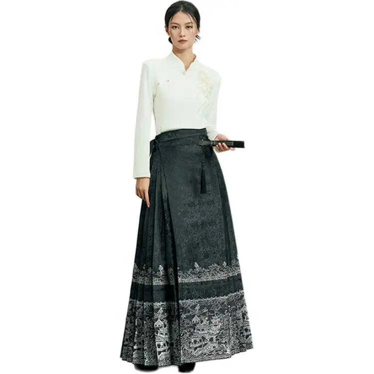 XINGHEHANGE Новый китайский стиль National Ветер Ming DYNASTY Длинный Sleeved Китайская юбка с узором "конское лицо" Топ Женские