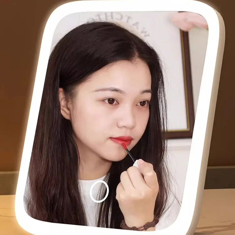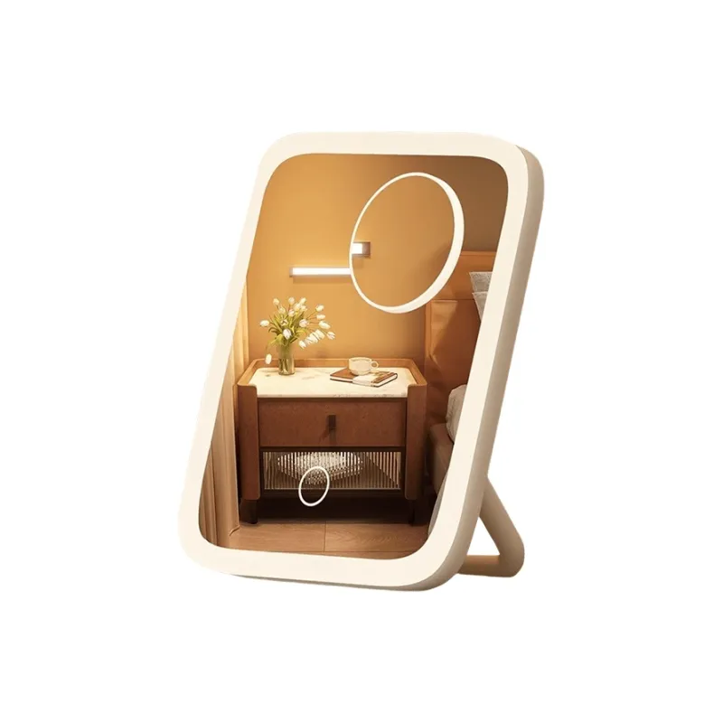 [Трехцветный Свет] Квадратное Зеркало Розовый + 5x Зеркальце (360° Вращающееся)