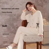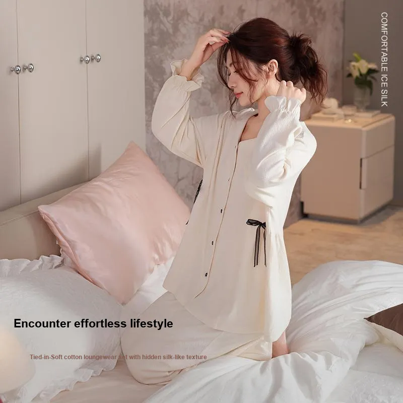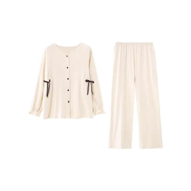 XIPOPIN Весенний Осенний Сезон Пижамы и Домашняя Одежда Женская Бежевая Абрикосовая