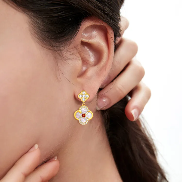 Стиль:Серьги-кольца с символом змеи и четырехлистным клевером [Белая оболочка]