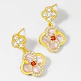 Серьги-кольца "Четырехлистный клевер" с символом Змеи [Розовая оболочка]
