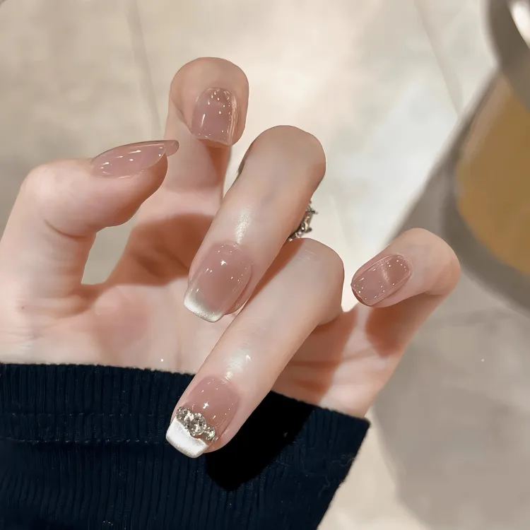 XNTX Французский Кошачий глаз False Nail Короткий Квадрат Мягкий Color Series Телесный Flashing