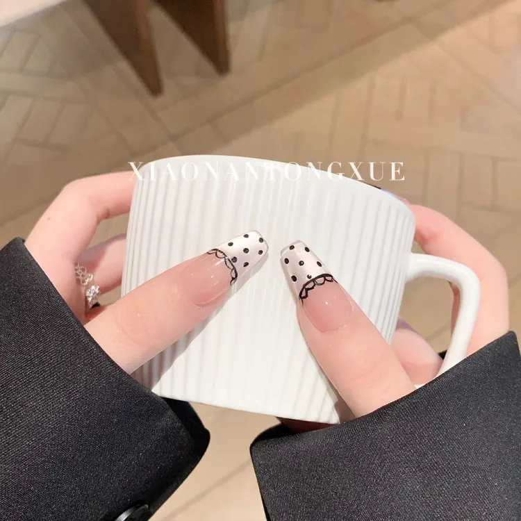 XNTX Midnight Paris False Nail Short LADDER Cool Color Series Jump Color Polka Dot