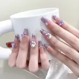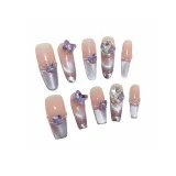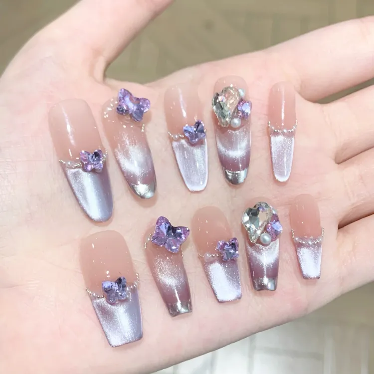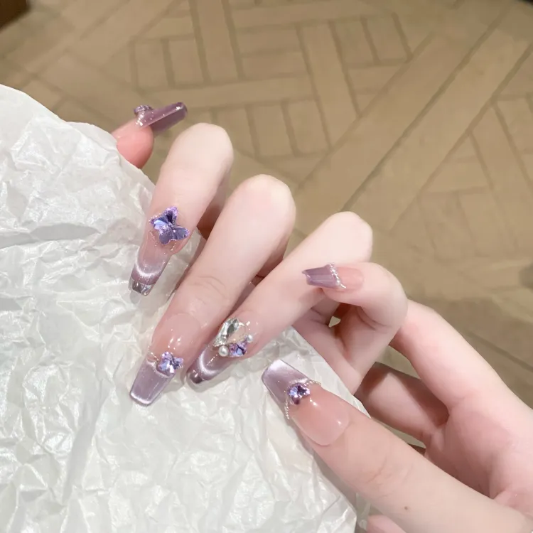 XNTX Кожа Flattering False Nail Овал Длинный Фиолетовые оттенки Телесный Невинно-соблазнительный