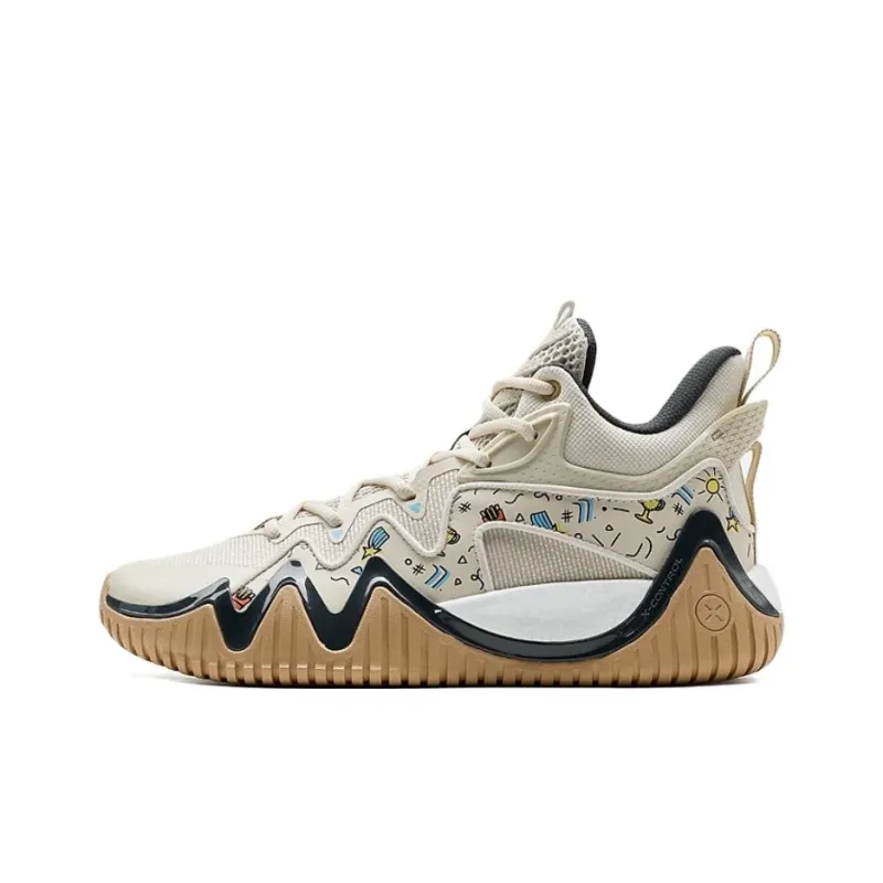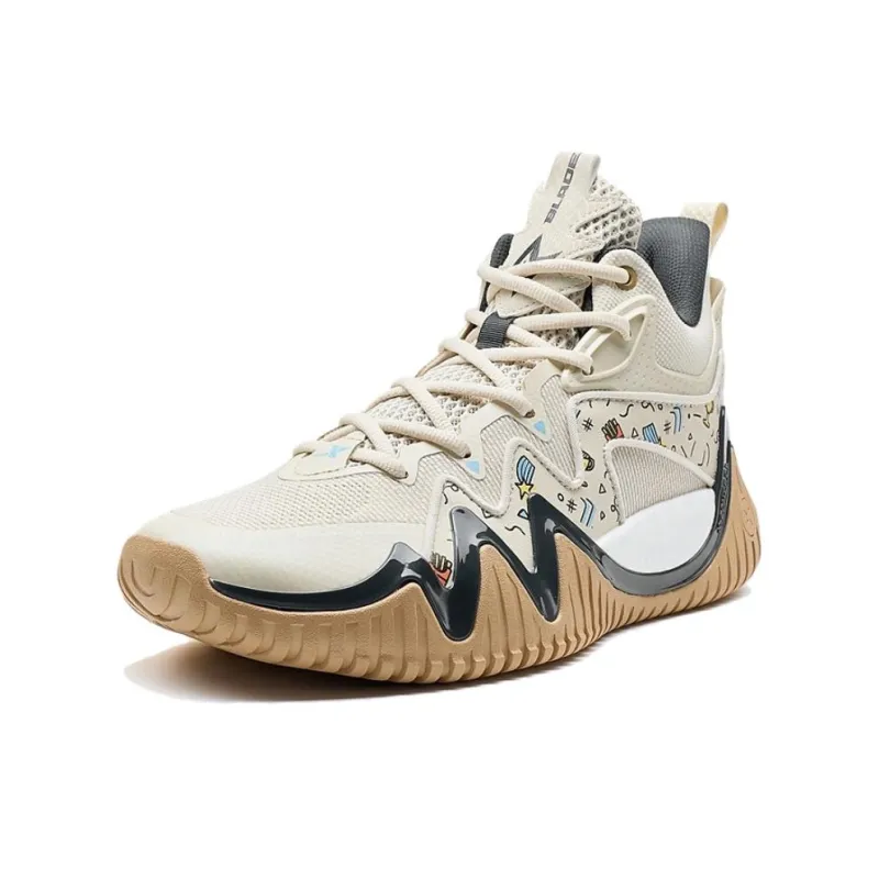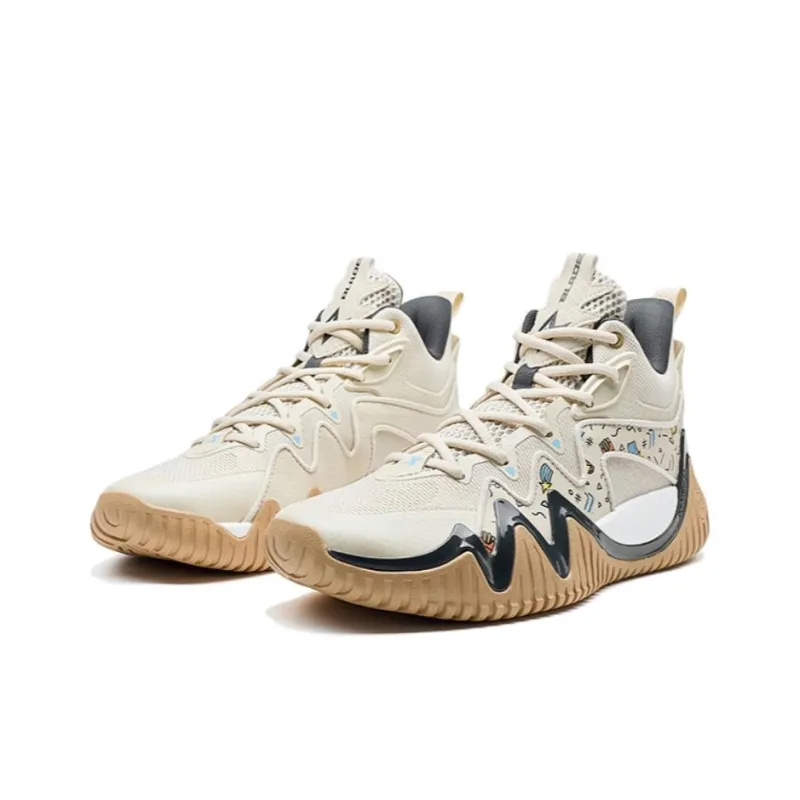 XTEP Slip-resistant и устойчивый к истиранию покрытие MID Топ Баскетбольные кроссовки Мужской Чайный белый