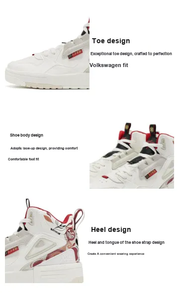XTEP Slip-resistant Abrasion-resistant High Top Skateboard Shoes Men's White Gray XTEP Противоскользящие Износостойкие Высокие Кроссовки для Скейтбординга Мужские Белые Серые