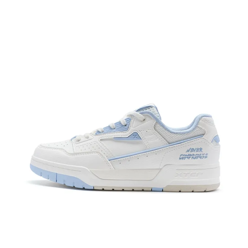 XTEP Slip-resistant Abrasion-resistant Low-top Skateboard Shoes Women's Sail White Northern Lights Blue