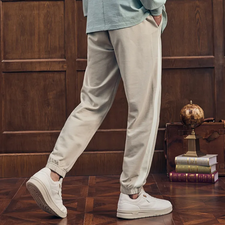 XTEP Вязаные тренировочные штаны мужские светло-льняные белые из хлопка