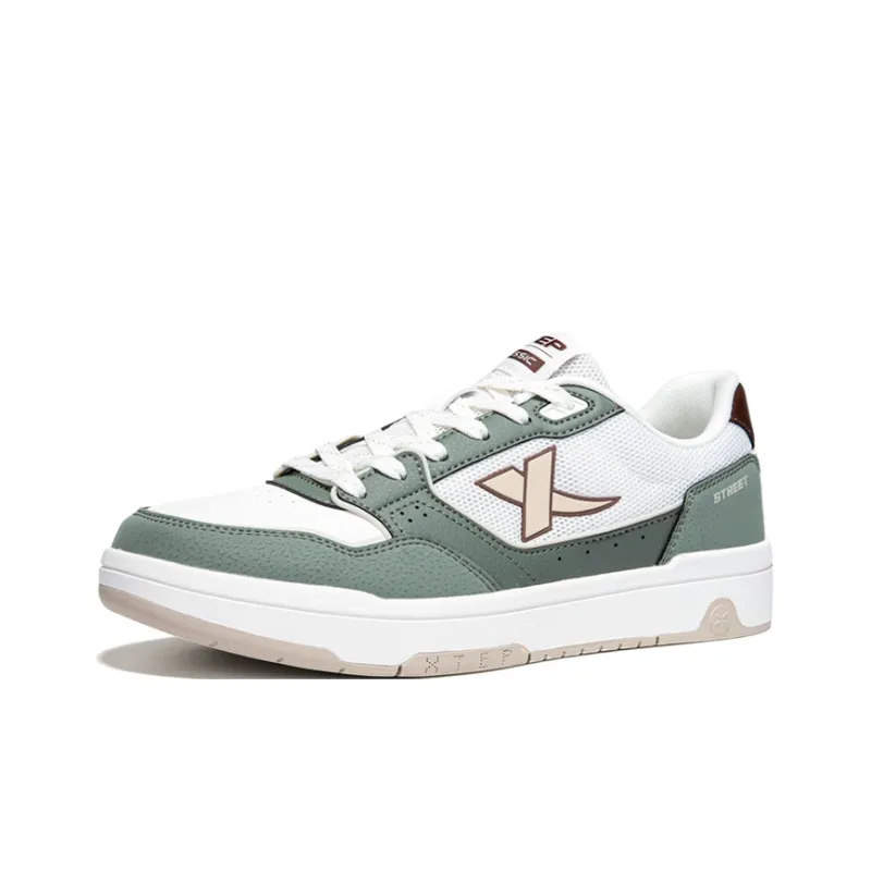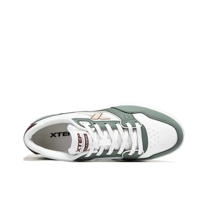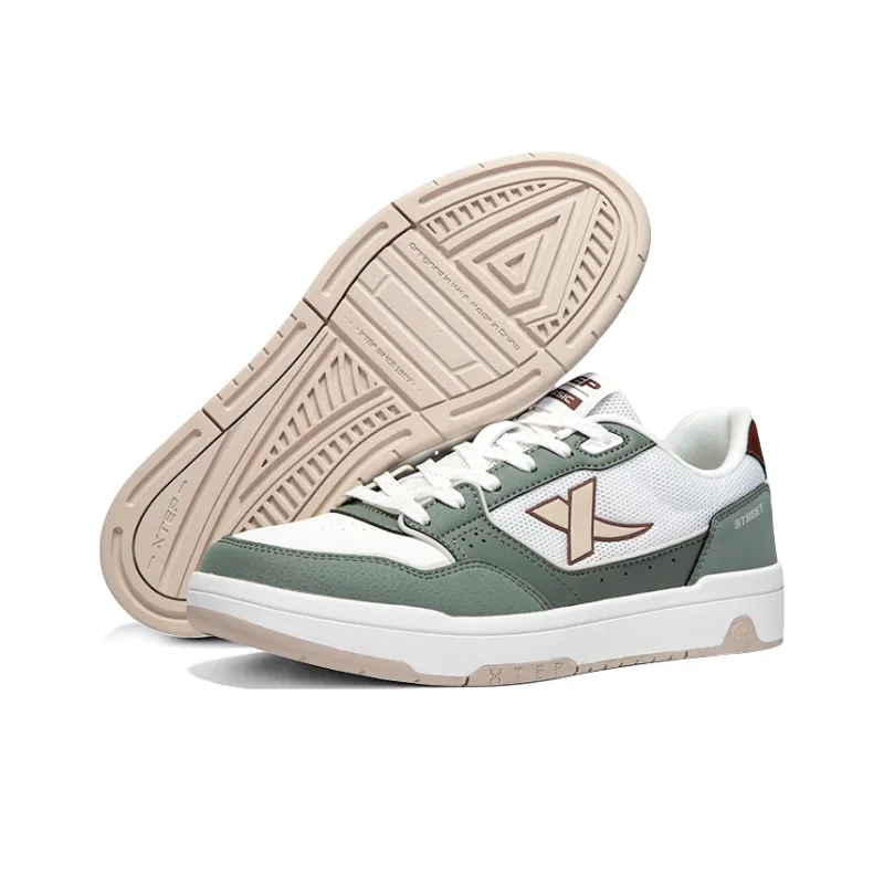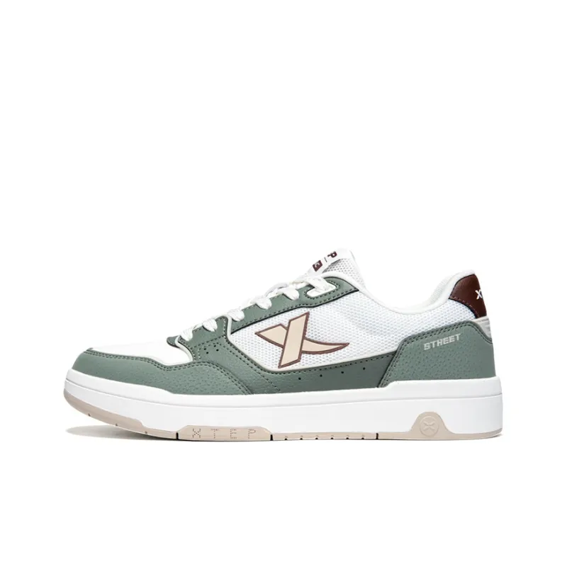 XTEP Быстросохнущий Устойчивый к истиранию Дышащий Низкий Топ Скейтборд Кроссовки Мужские Парусный Белый с Серо-Зеленым