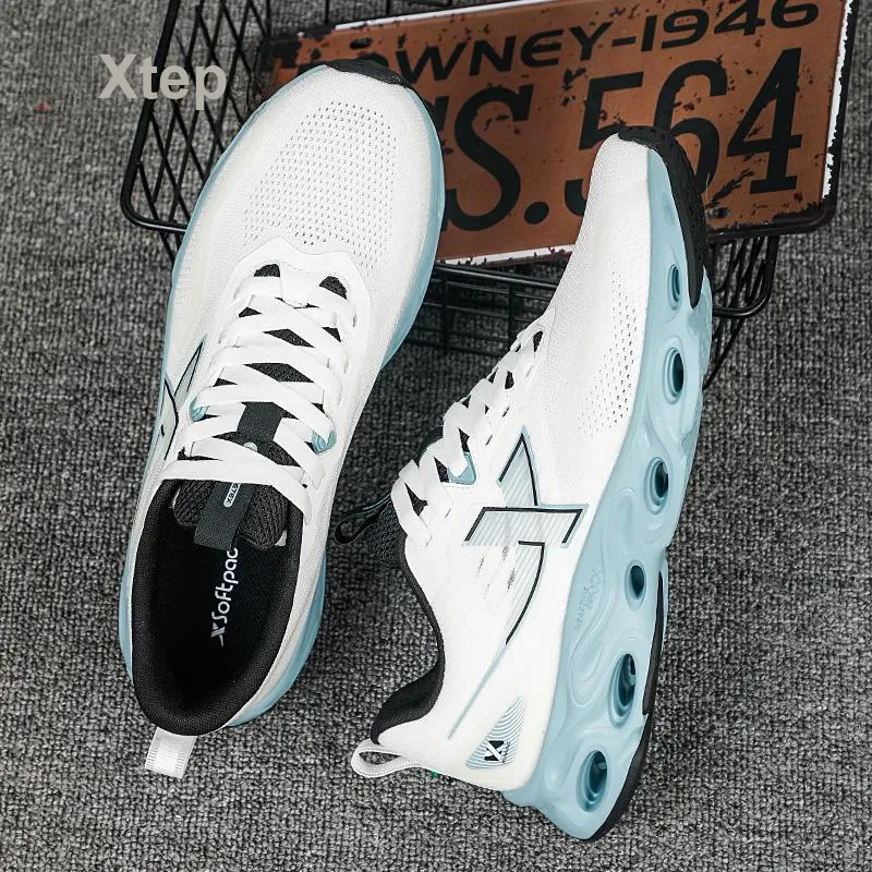 XTEP Беговые кроссовки Низкий Топ Парусный Белый/Серебряный Рыбка Зеленый Мужской