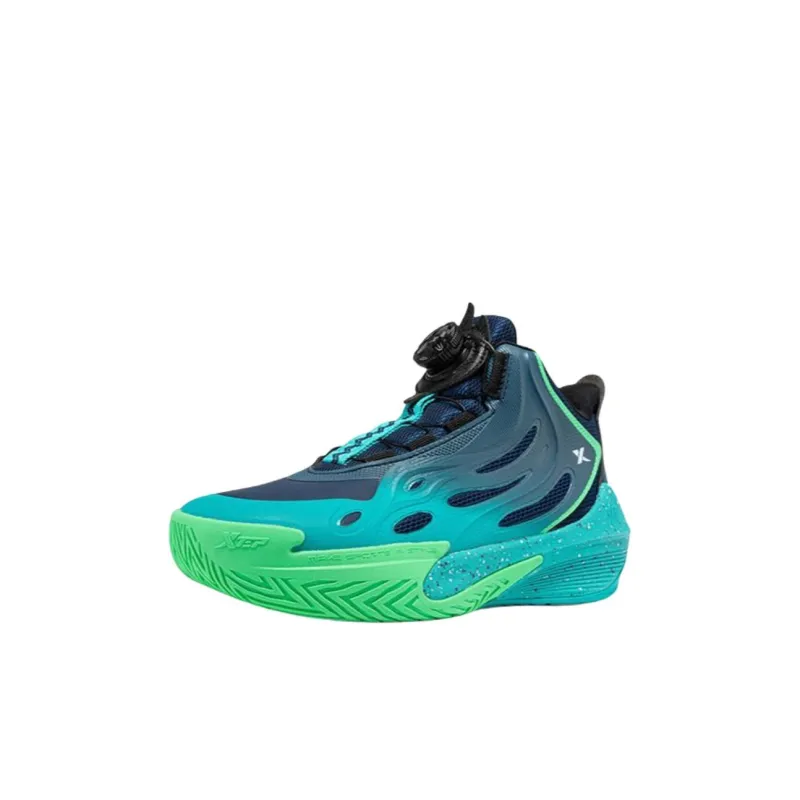 XTEP Slip-resistant Abrasion-resistant High-top Basketball Shoes Night Blue Turquoise Baby