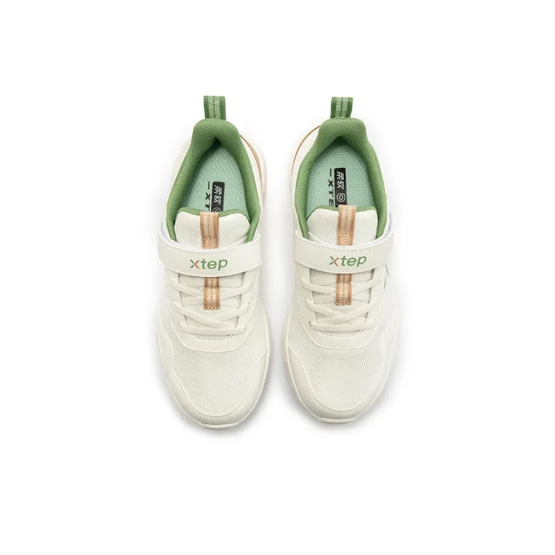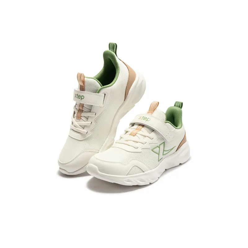 XTEP Противоскользящие устойчивые к истиранию низкие топовые детские беговые кроссовки парусный белый и садово-зеленый
