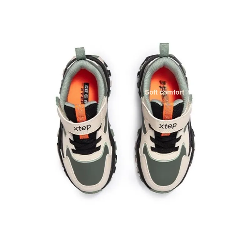 XTEP Устойчивый к истиранию Низкий верх Детские повседневные туфли Кожаный серый Краб Оболочка Зеленый Детский