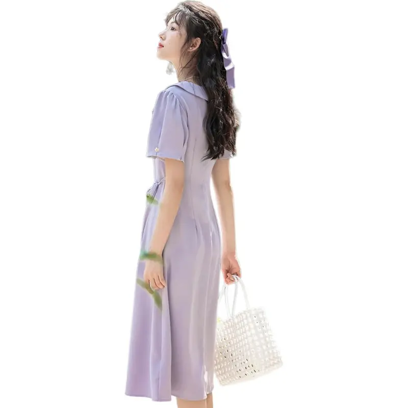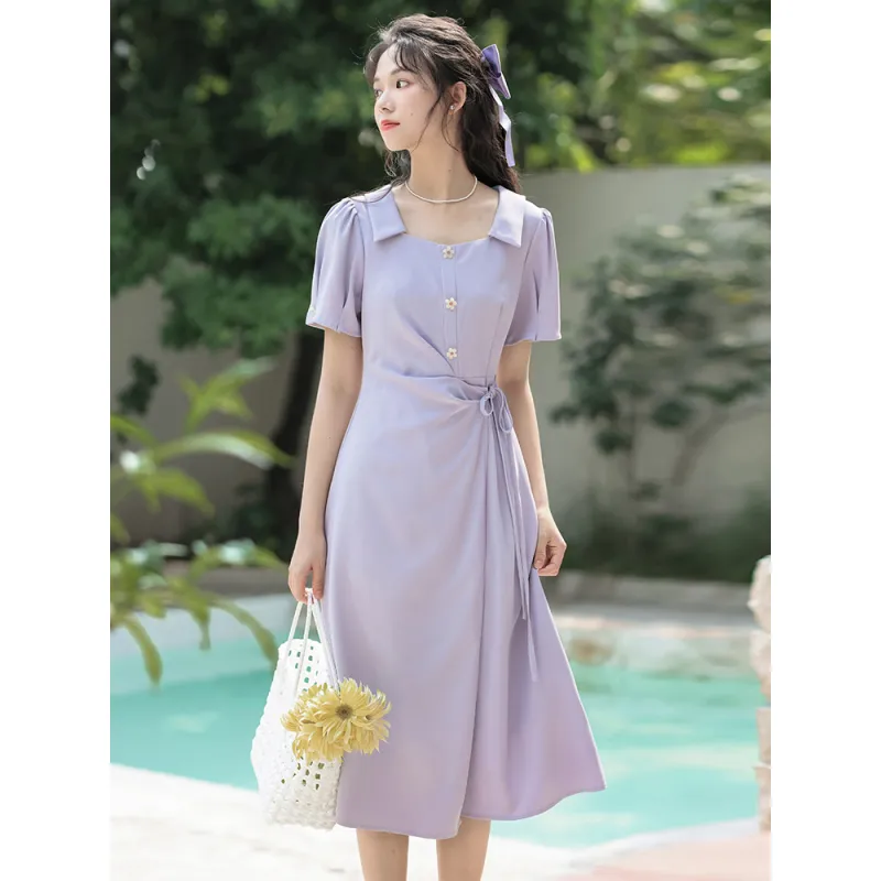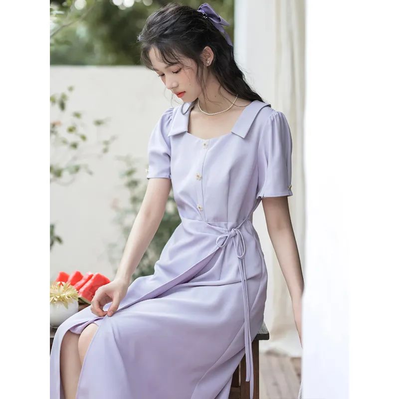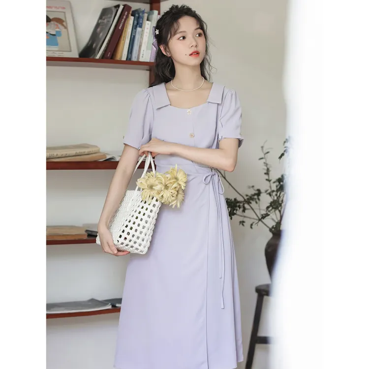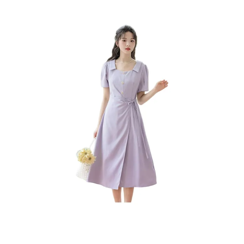 Xuantang Короткое платье с короткими рукавами женское фиолетовое