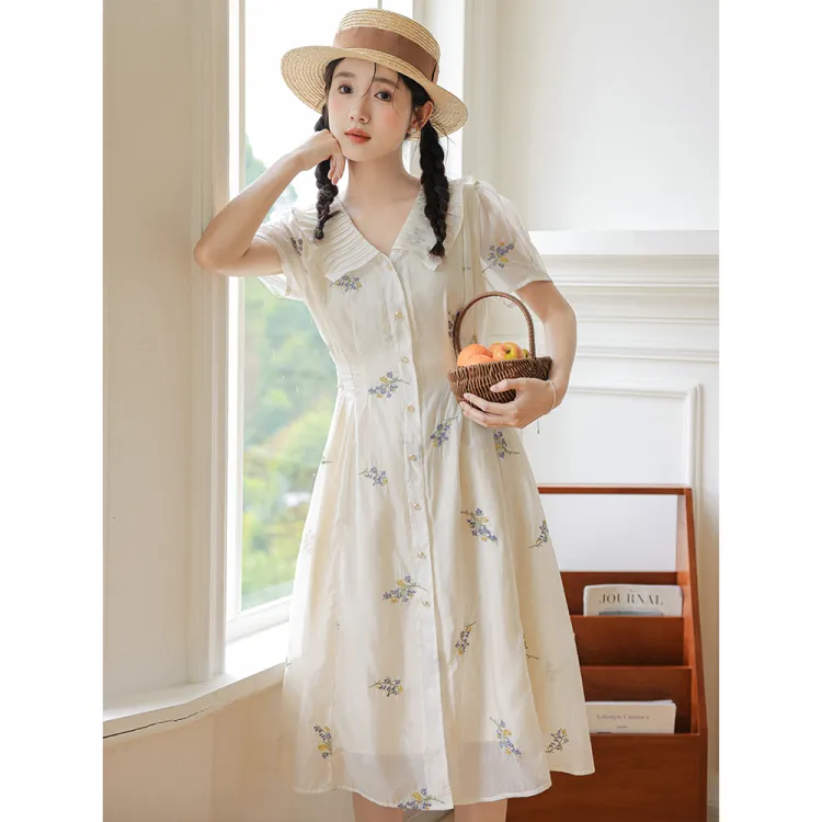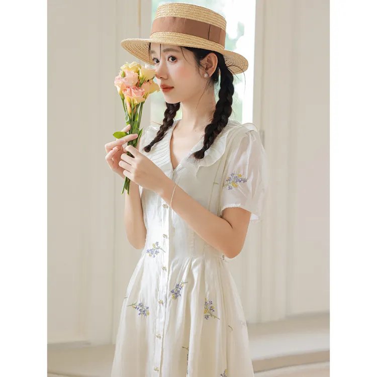 Xuan Tang Короткий рукав Платье Женское Белое