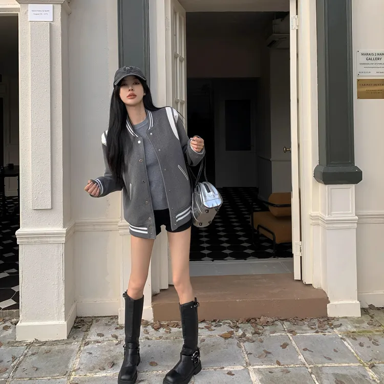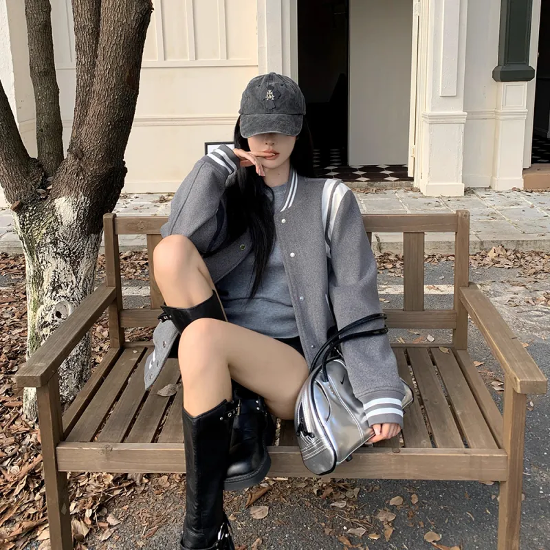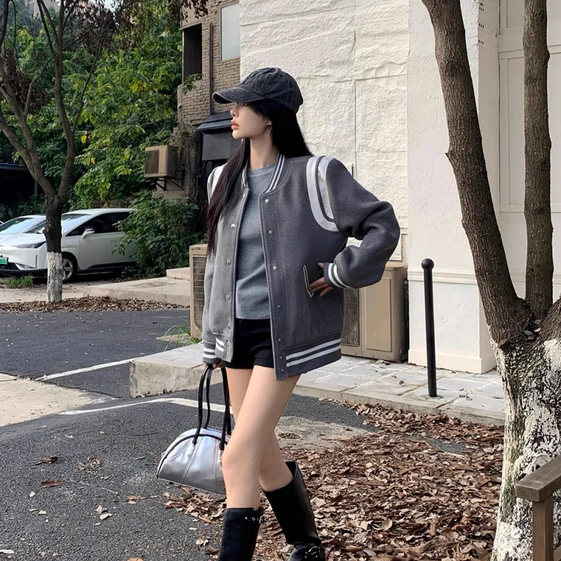 XUANSHU Бейсбольная куртка Унисекс Серый