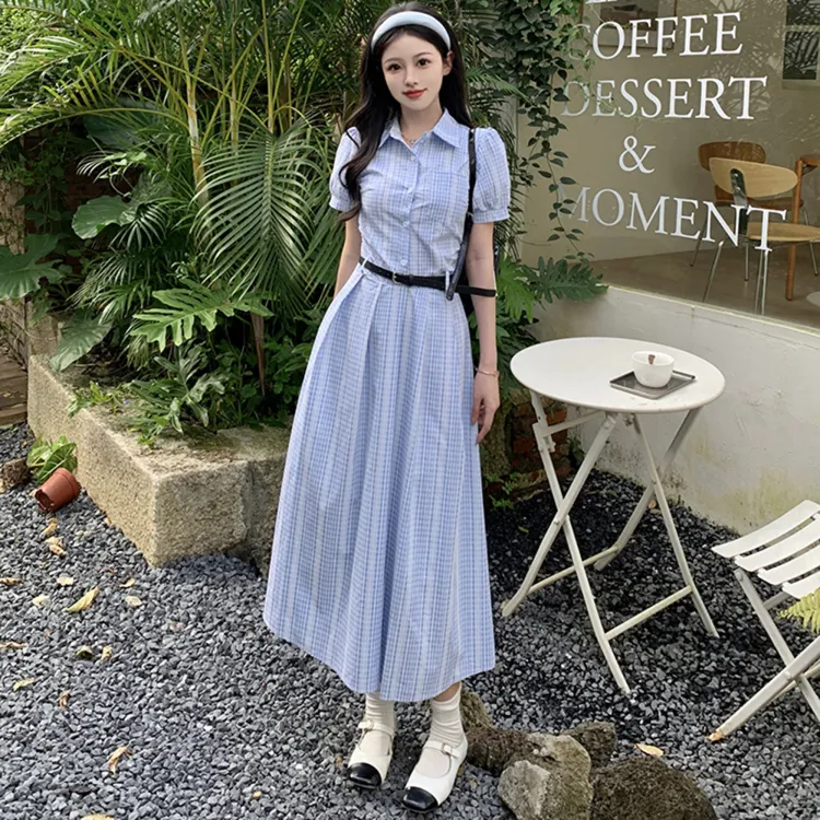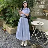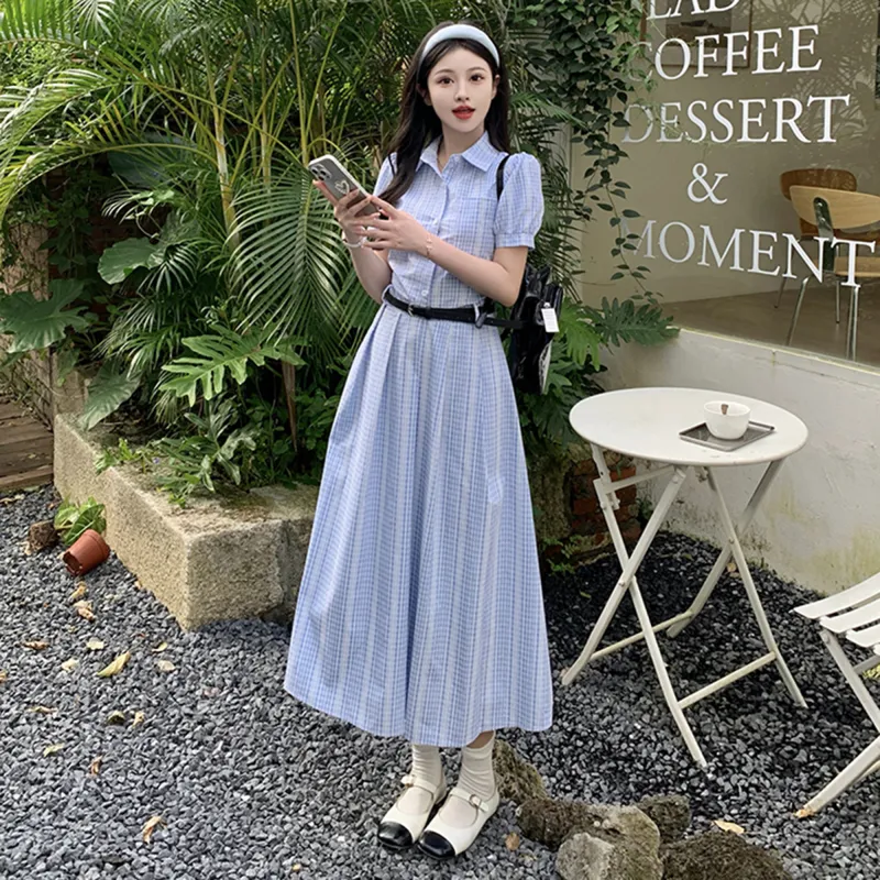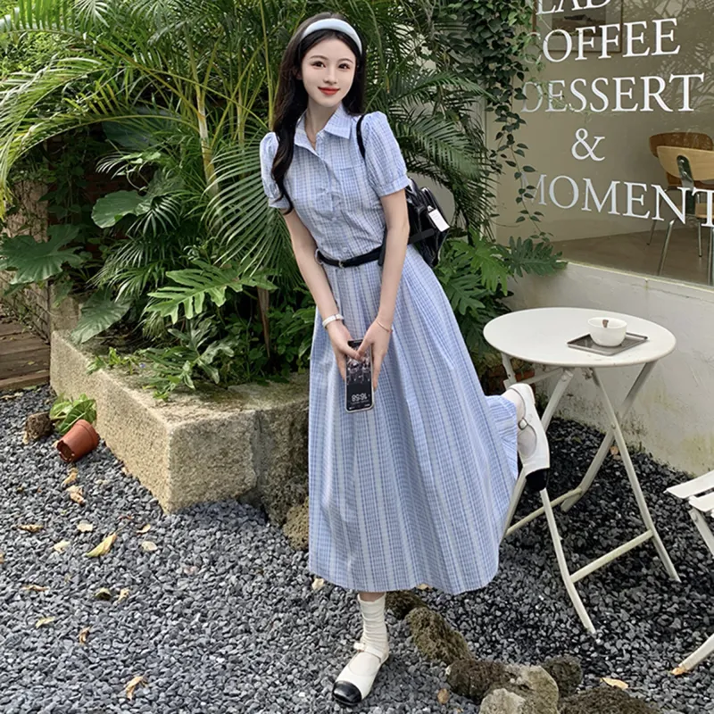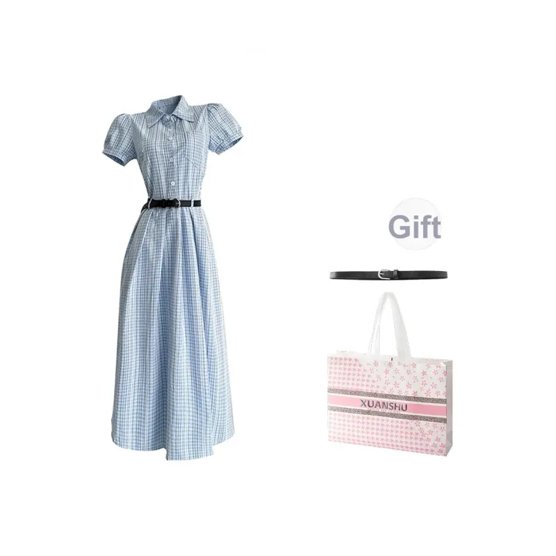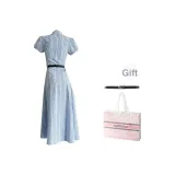 XUANSHU Короткий рукав Платье Женское Синее