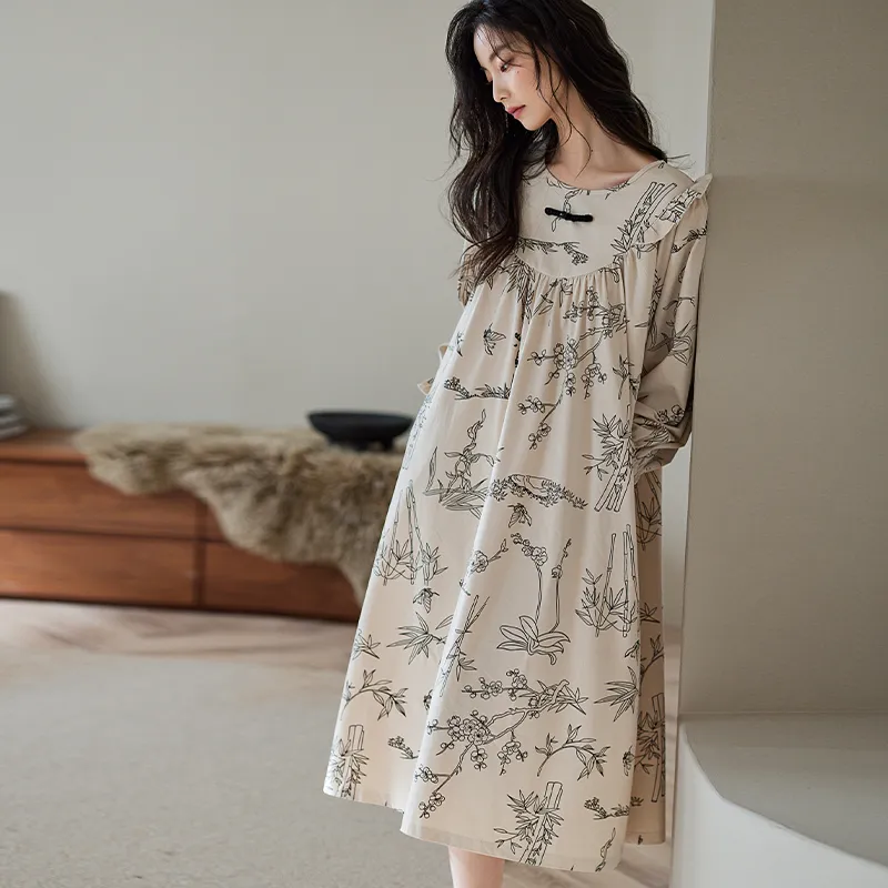 XUANZHITING Ночная сорочка Женская Набор в подарочной коробке Экрю