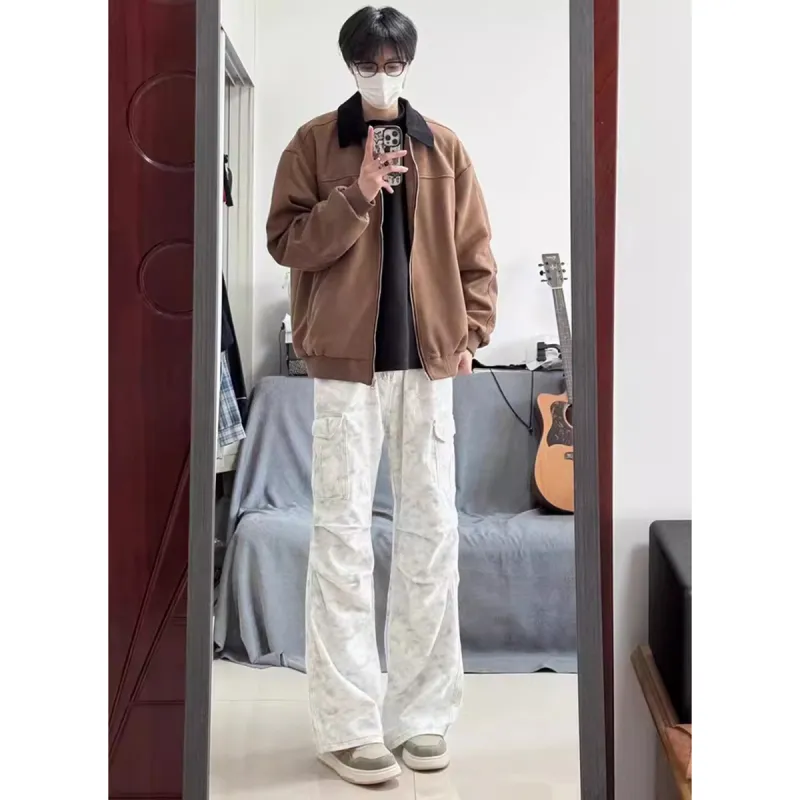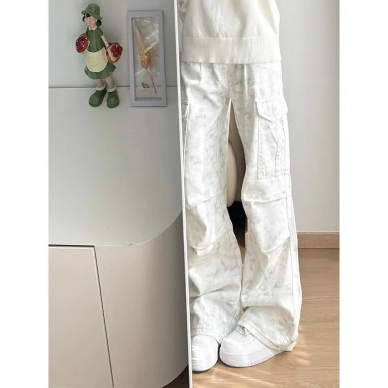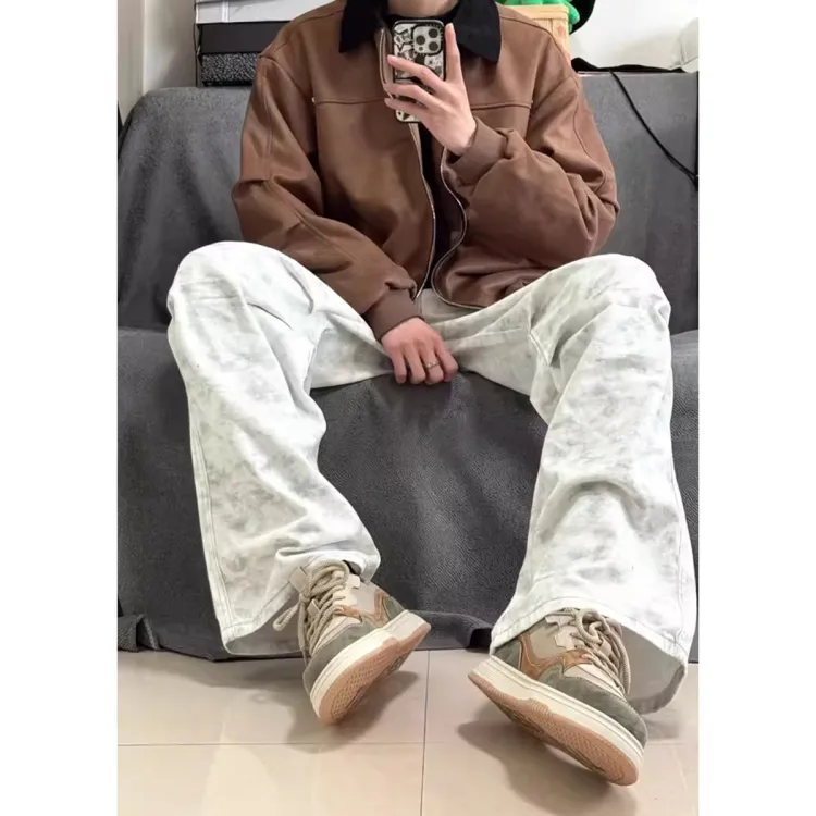 XUBAIHUO Белый Грязь Унисекс Джинсы