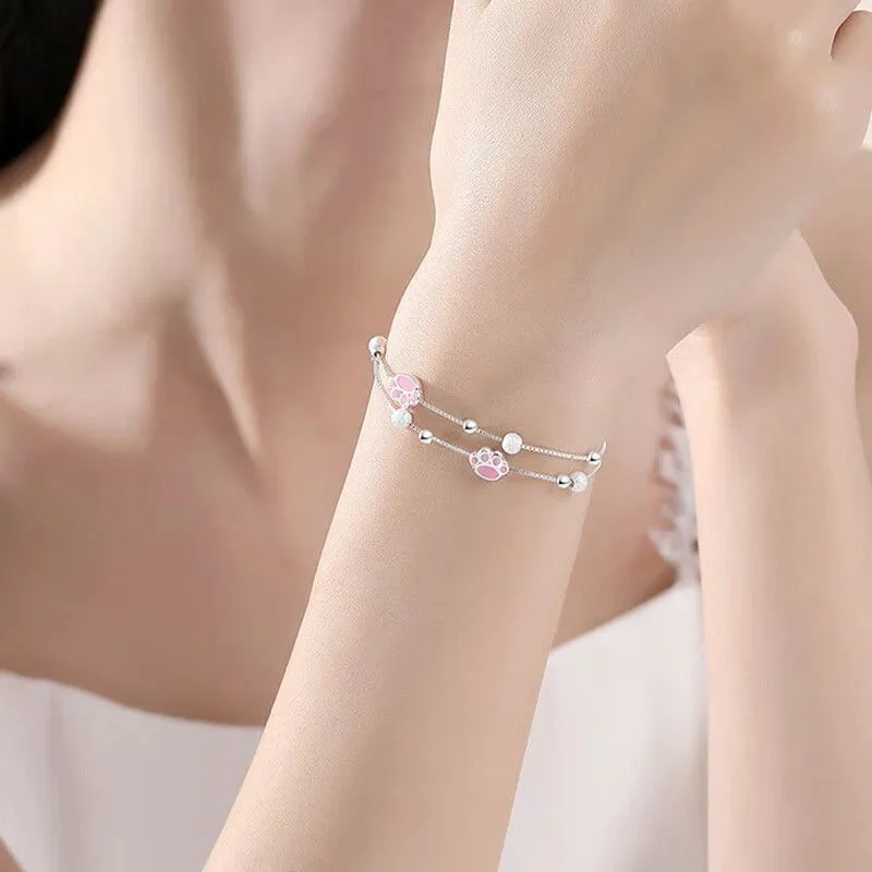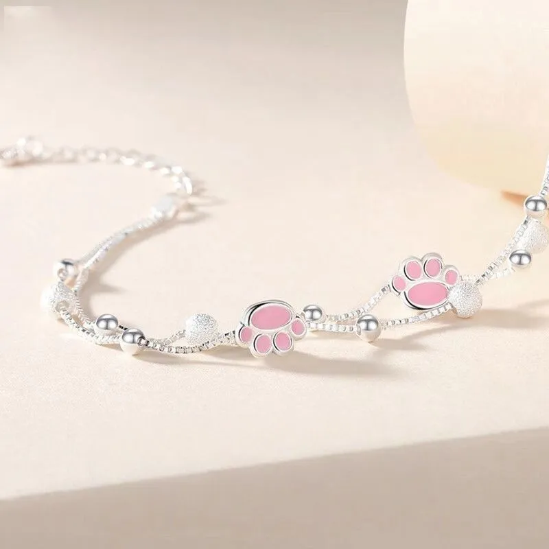 Розовый милый браслет с кошачьей лапой