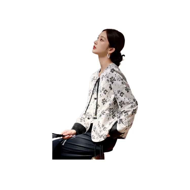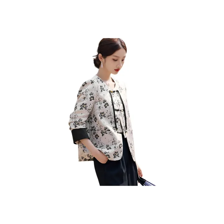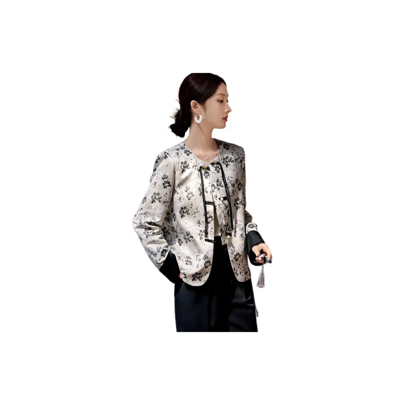 XWI Бежевый с черными цветами Женские Куртки